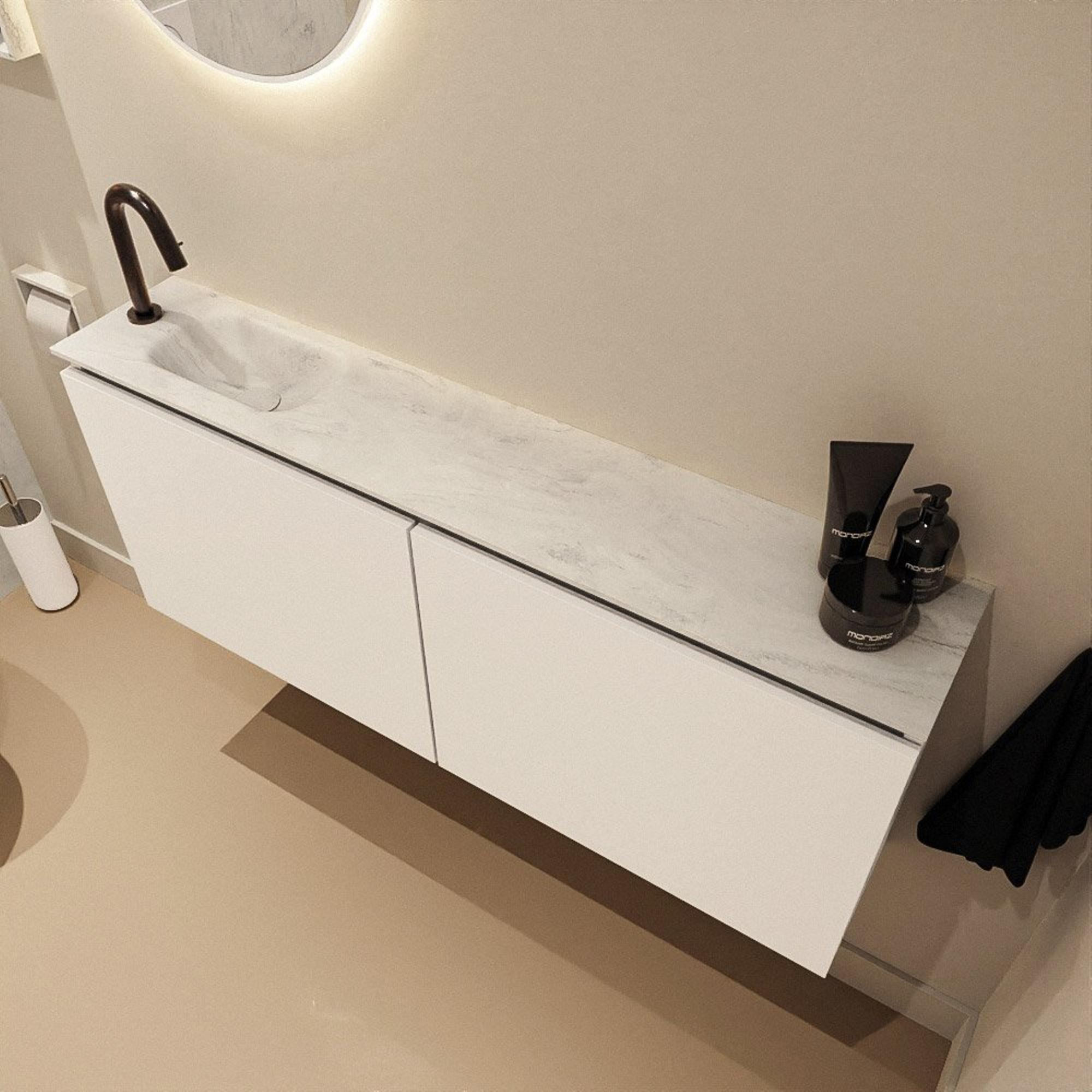 MONDIAZ TURE-DLUX 120cm toiletmeubel Talc. EDEN wastafel Opalo positie links. Met 1 kraangat.