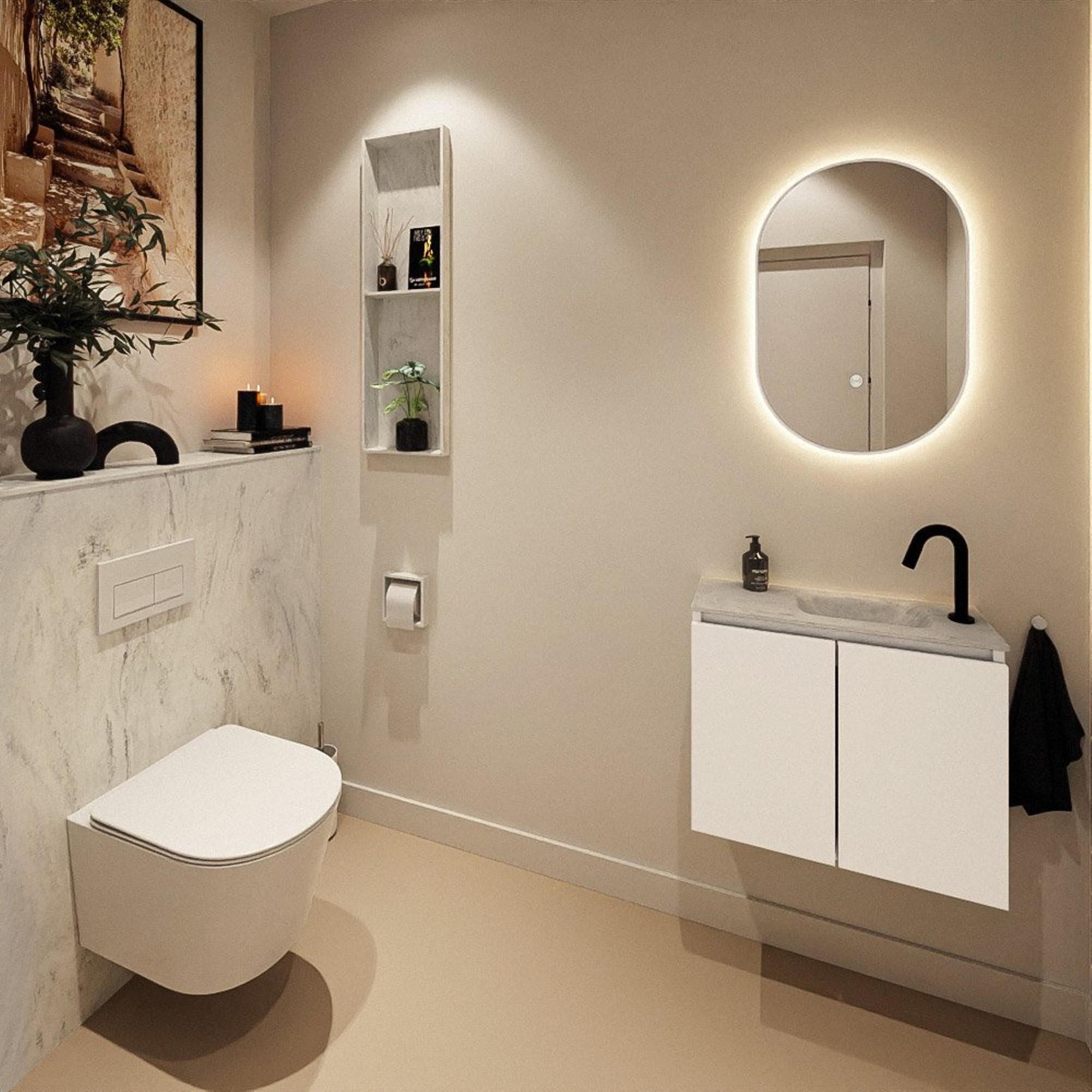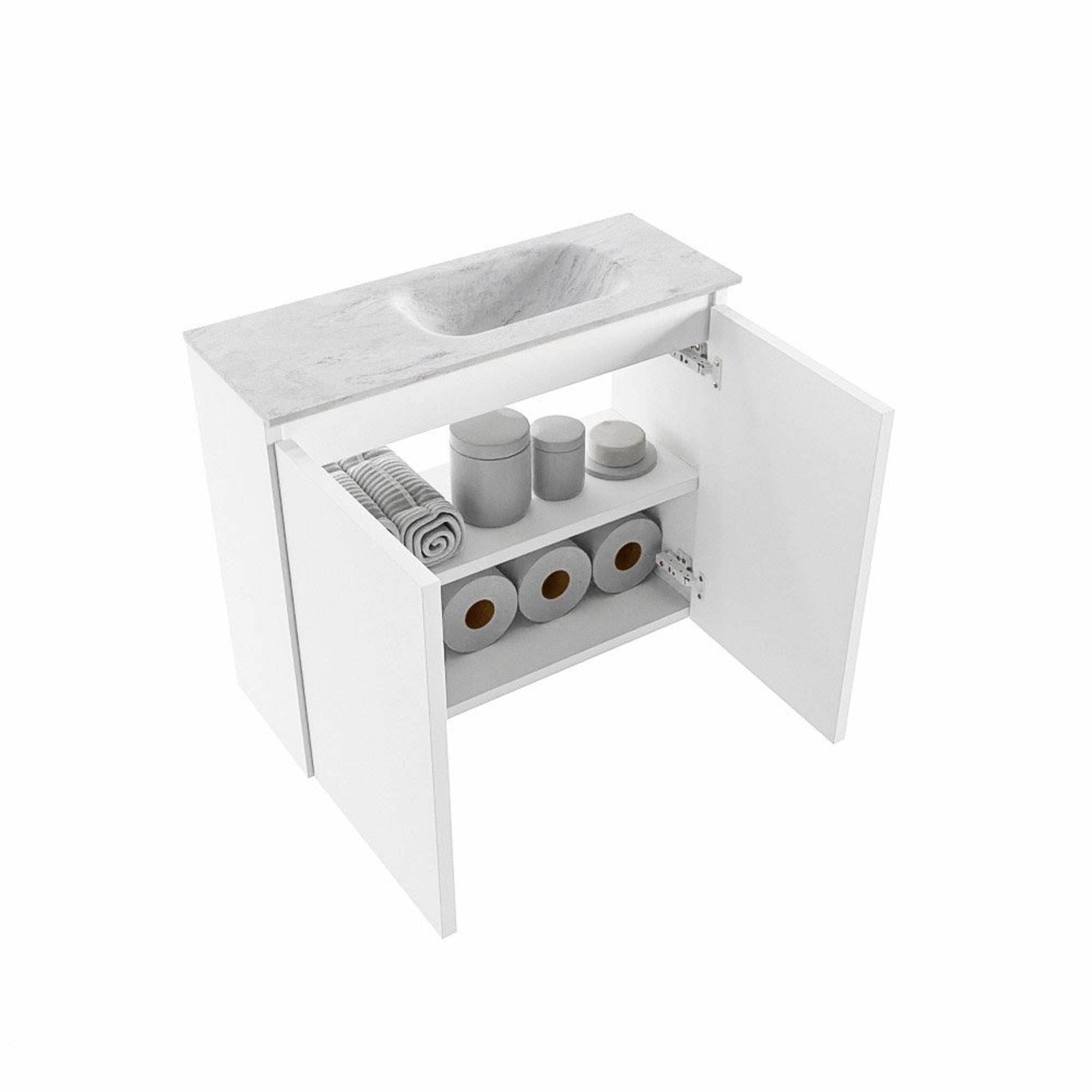 MONDIAZ TURE-DLUX 60cm toiletmeubel Talc. EDEN wastafel Opalo positie rechts. Met 1 kraangat.