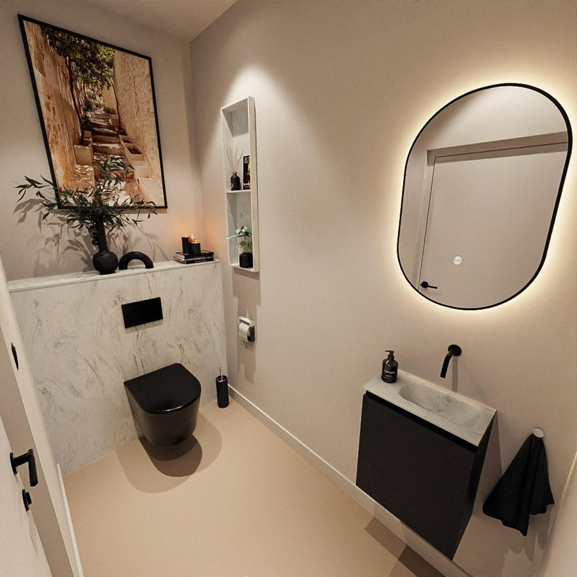 MONDIAZ TURE-DLUX 40cm toiletmeubel Urban. EDEN wastafel Opalo positie rechts. Zonder kraangat.