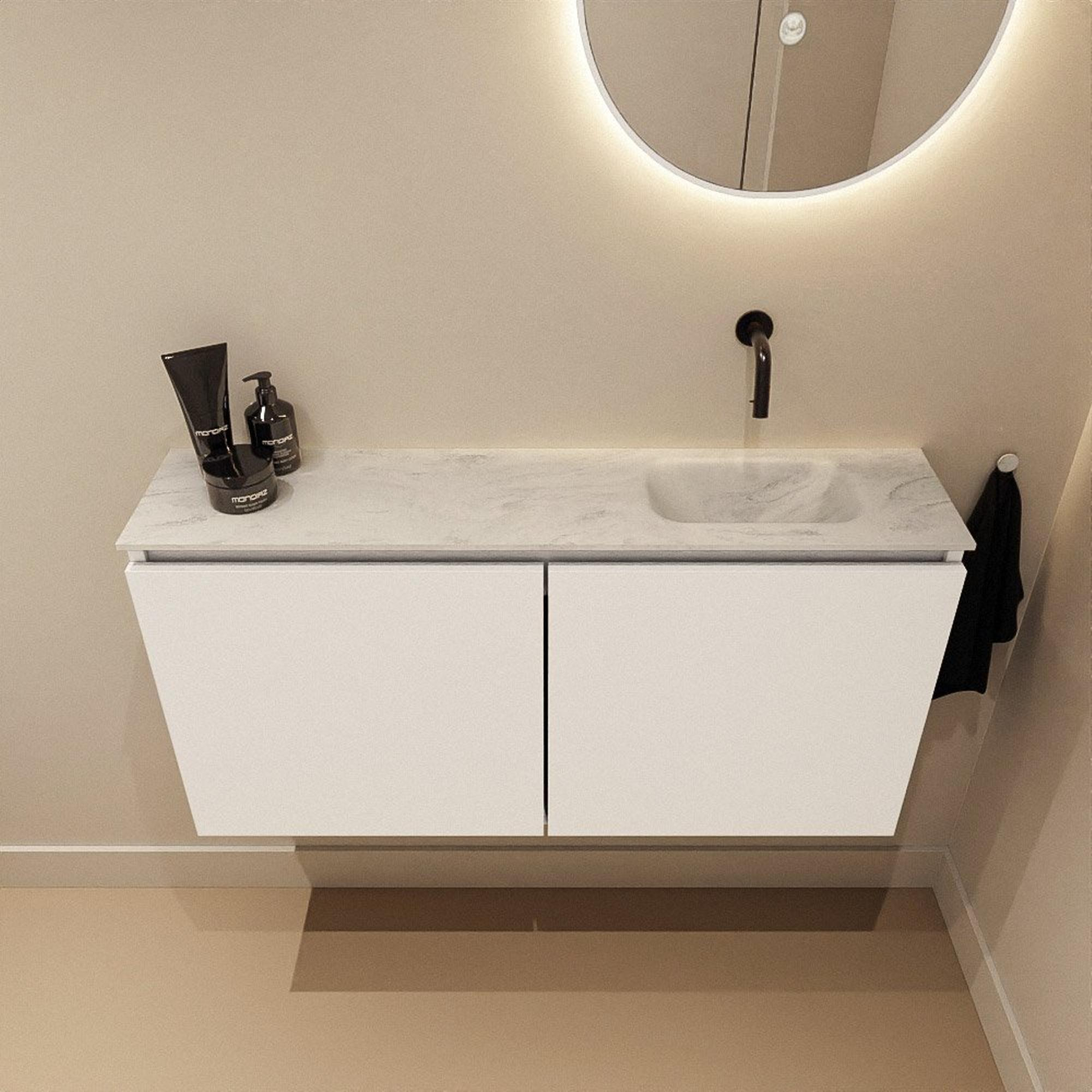 MONDIAZ TURE-DLUX 100cm toiletmeubel Talc. EDEN wastafel Opalo positie rechts. Zonder kraangat.