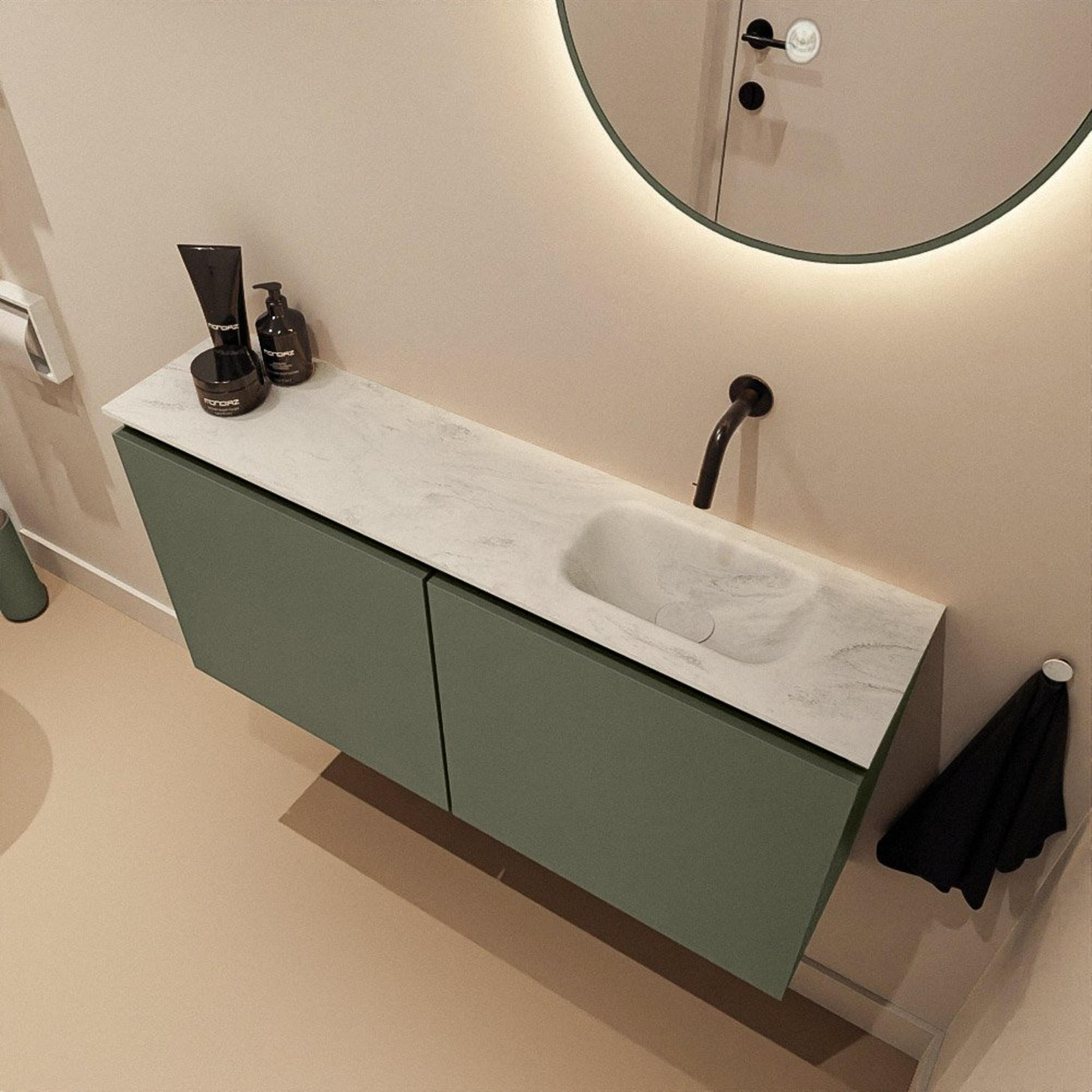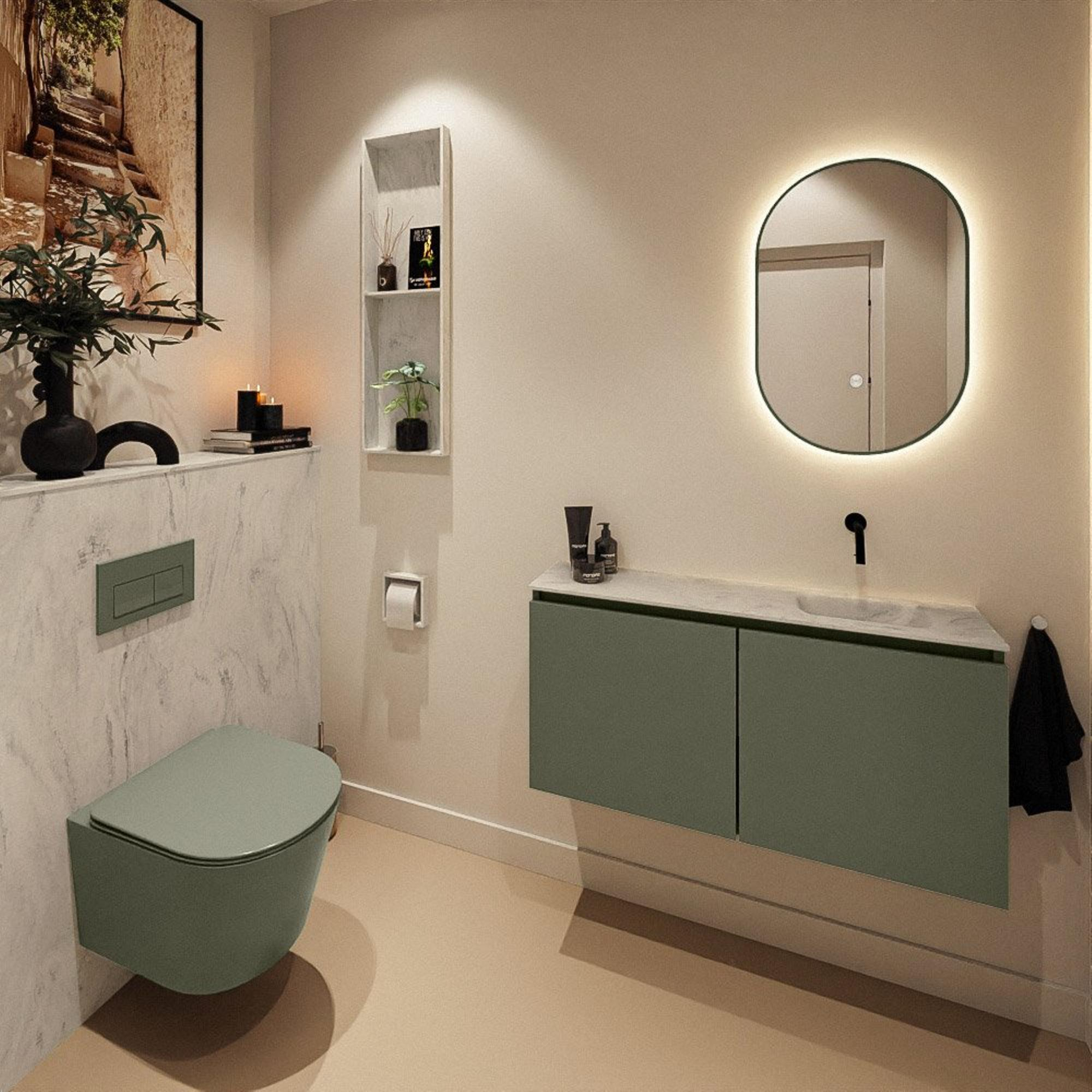 MONDIAZ TURE-DLUX 100cm toiletmeubel Army. EDEN wastafel Opalo positie rechts. Zonder kraangat.