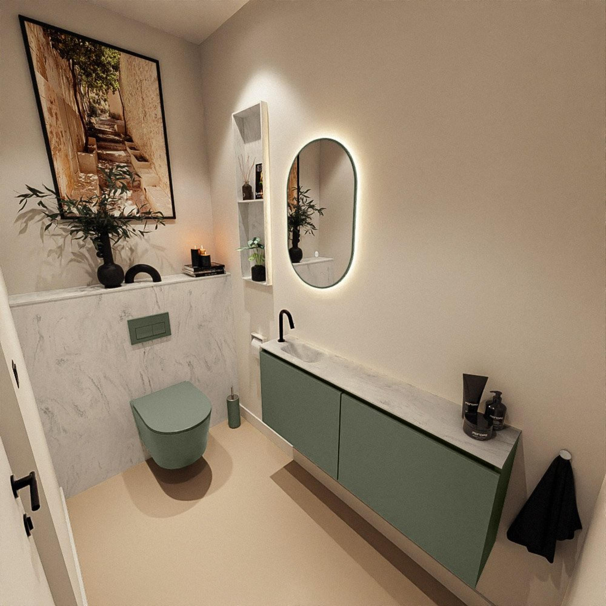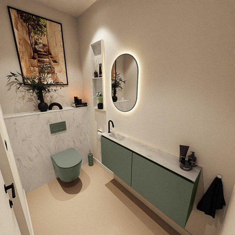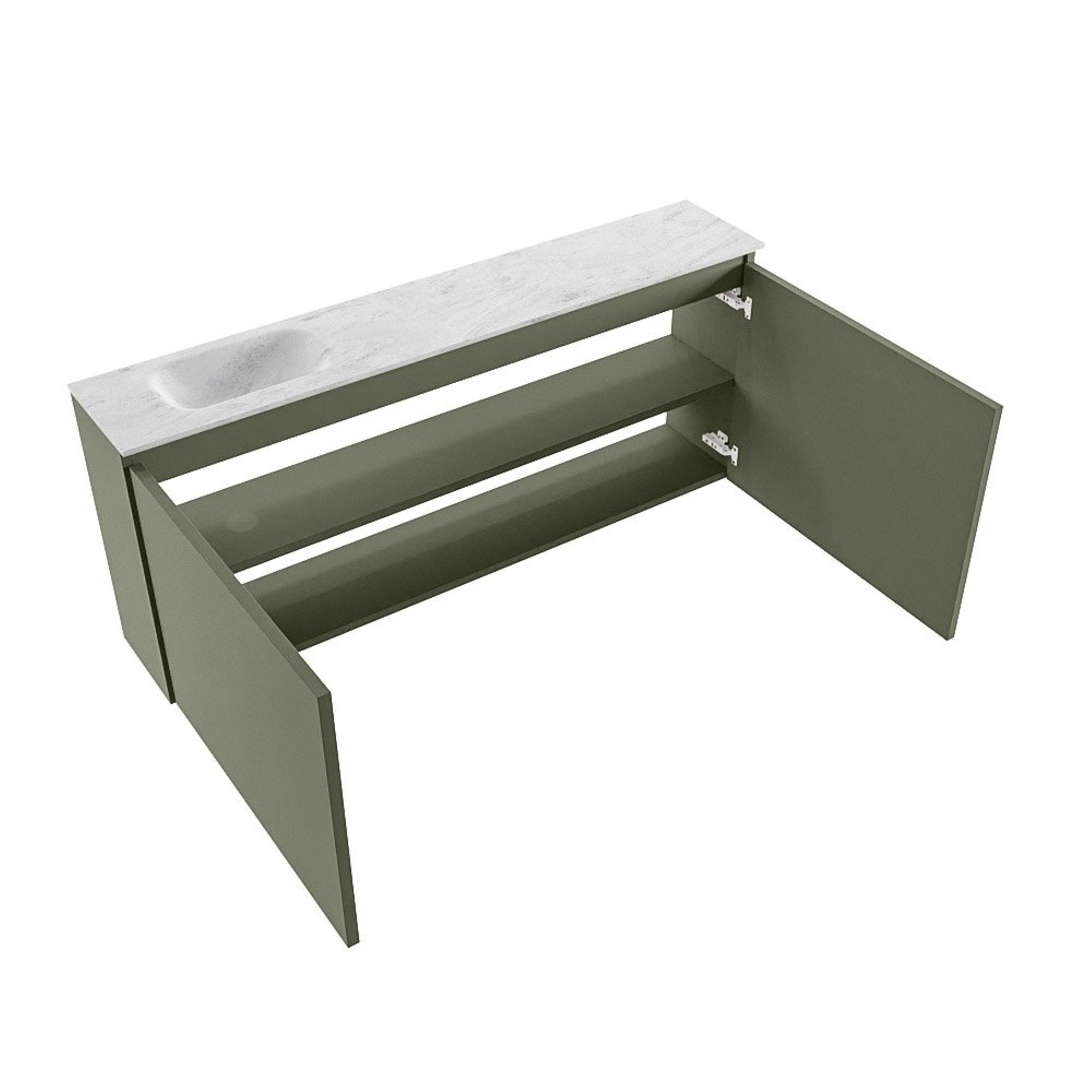 MONDIAZ TURE-DLUX 120cm toiletmeubel Army. EDEN wastafel Opalo positie links. Met 1 kraangat.