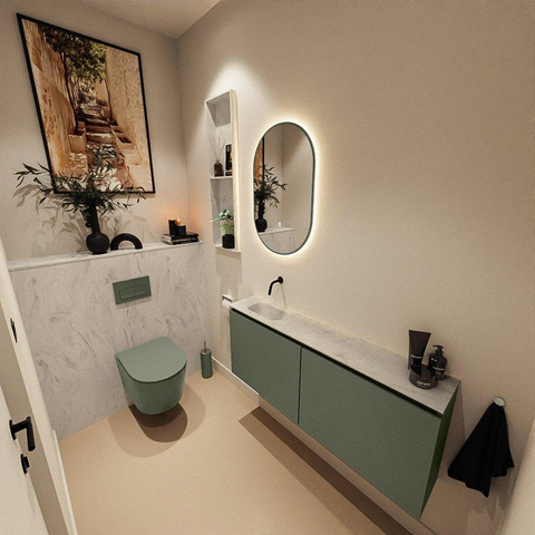 MONDIAZ TURE-DLUX 120cm toiletmeubel Army. EDEN wastafel Opalo positie links. Zonder kraangat.