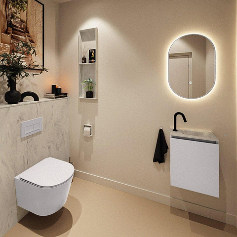 MONDIAZ TURE-DLUX 40cm toiletmeubel Cale. EDEN wastafel Opalo positie rechts. Met 1 kraangat.