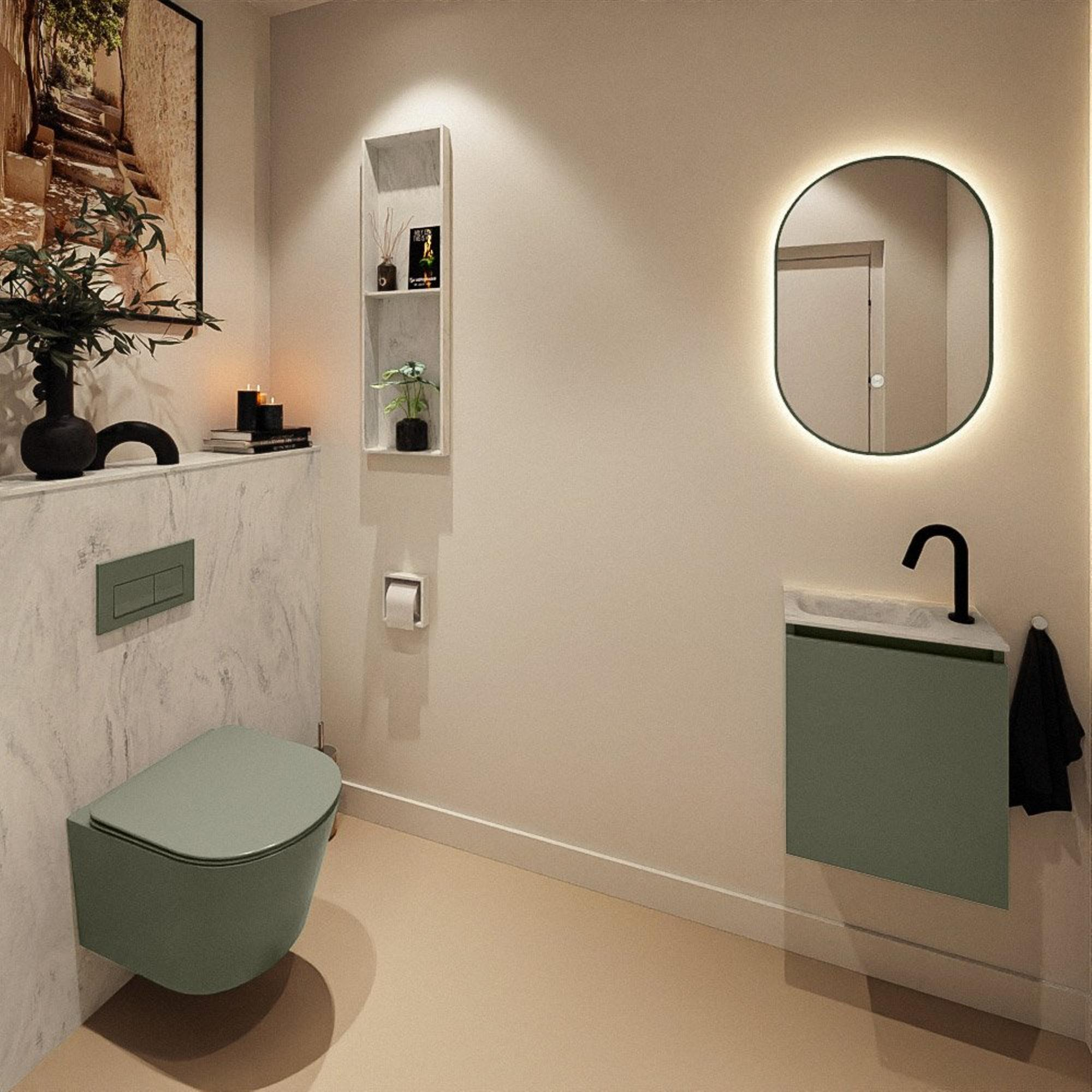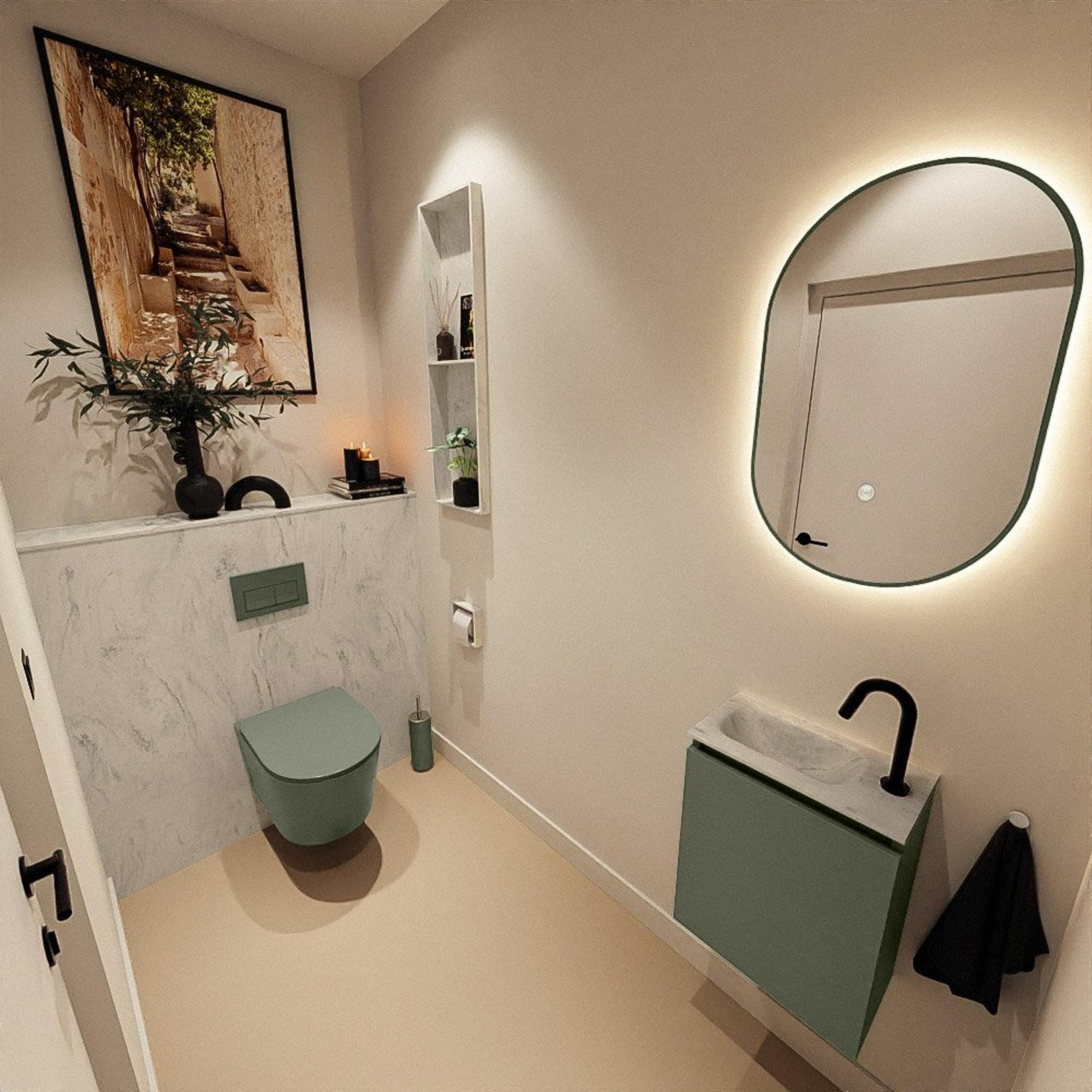MONDIAZ TURE-DLUX 40cm toiletmeubel Army. EDEN wastafel Opalo positie links. Met 1 kraangat.