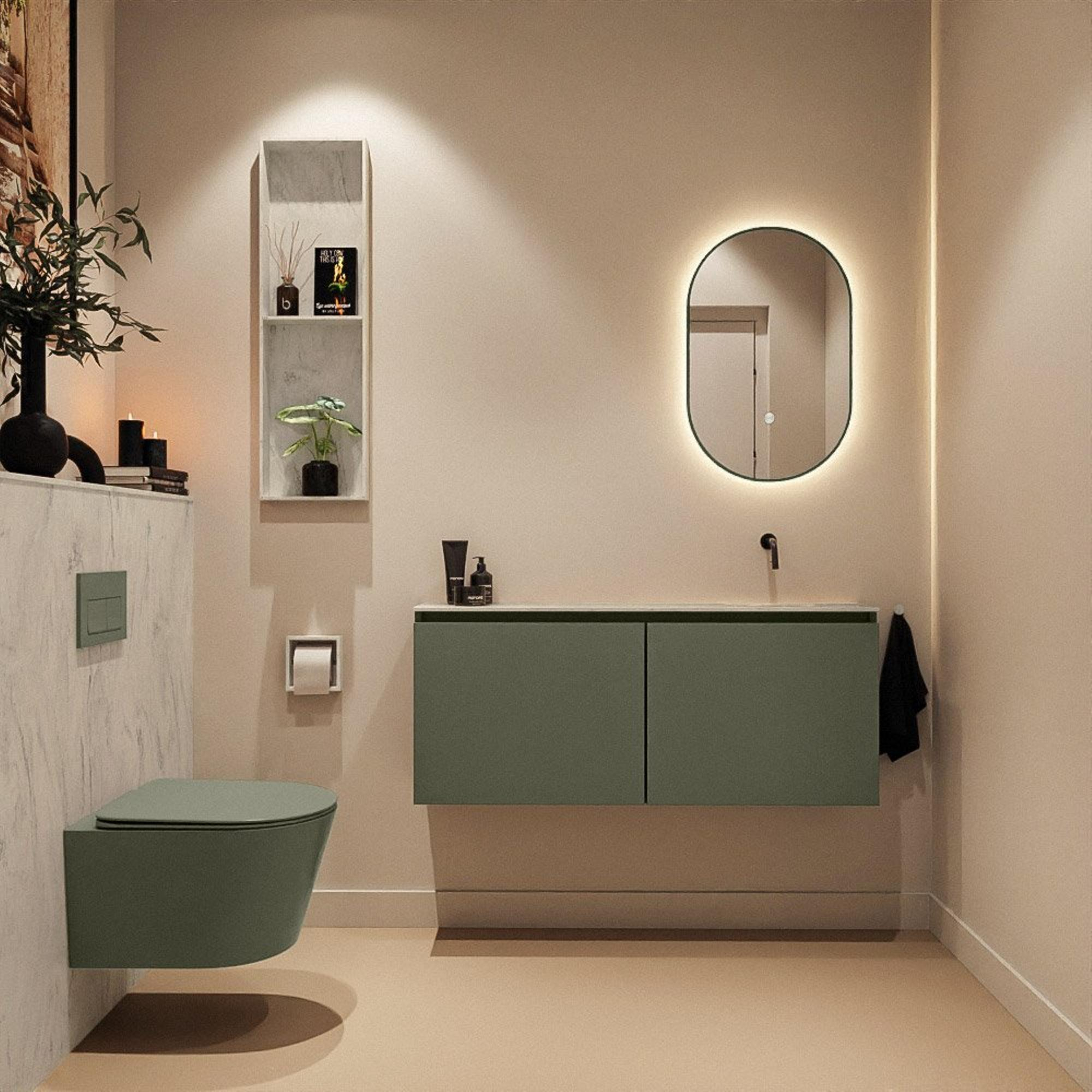 MONDIAZ TURE-DLUX 120cm toiletmeubel Army. EDEN wastafel Opalo positie rechts. Zonder kraangat.