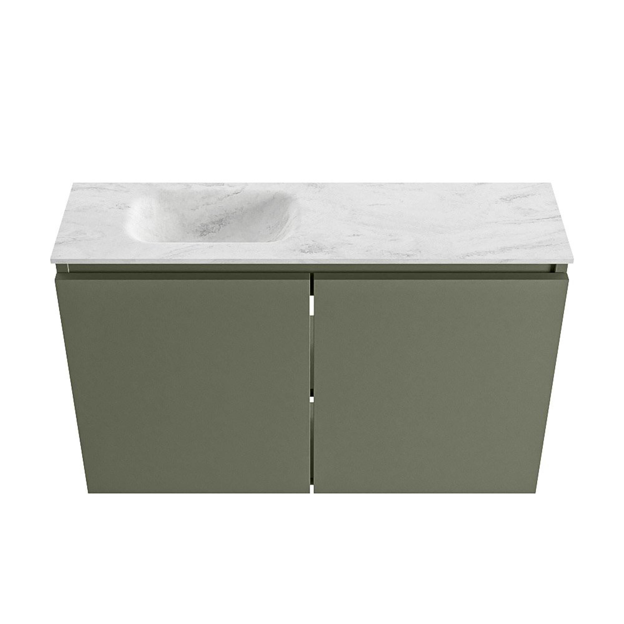 MONDIAZ TURE-DLUX 80cm toiletmeubel Army. EDEN wastafel Opalo positie links. Met 1 kraangat.