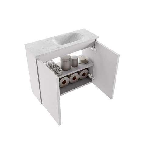 MONDIAZ TURE-DLUX 60cm toiletmeubel Cale. EDEN wastafel Opalo positie rechts. Met 1 kraangat.