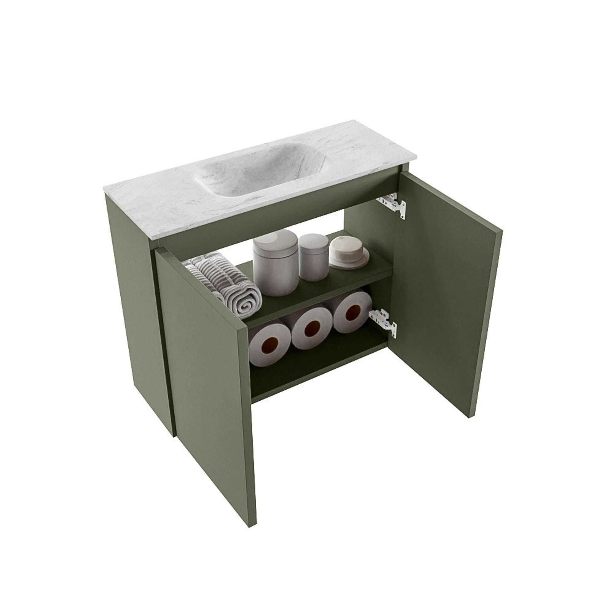 MONDIAZ TURE-DLUX 60cm toiletmeubel Army. EDEN wastafel Opalo positie midden. Met 1 kraangat.