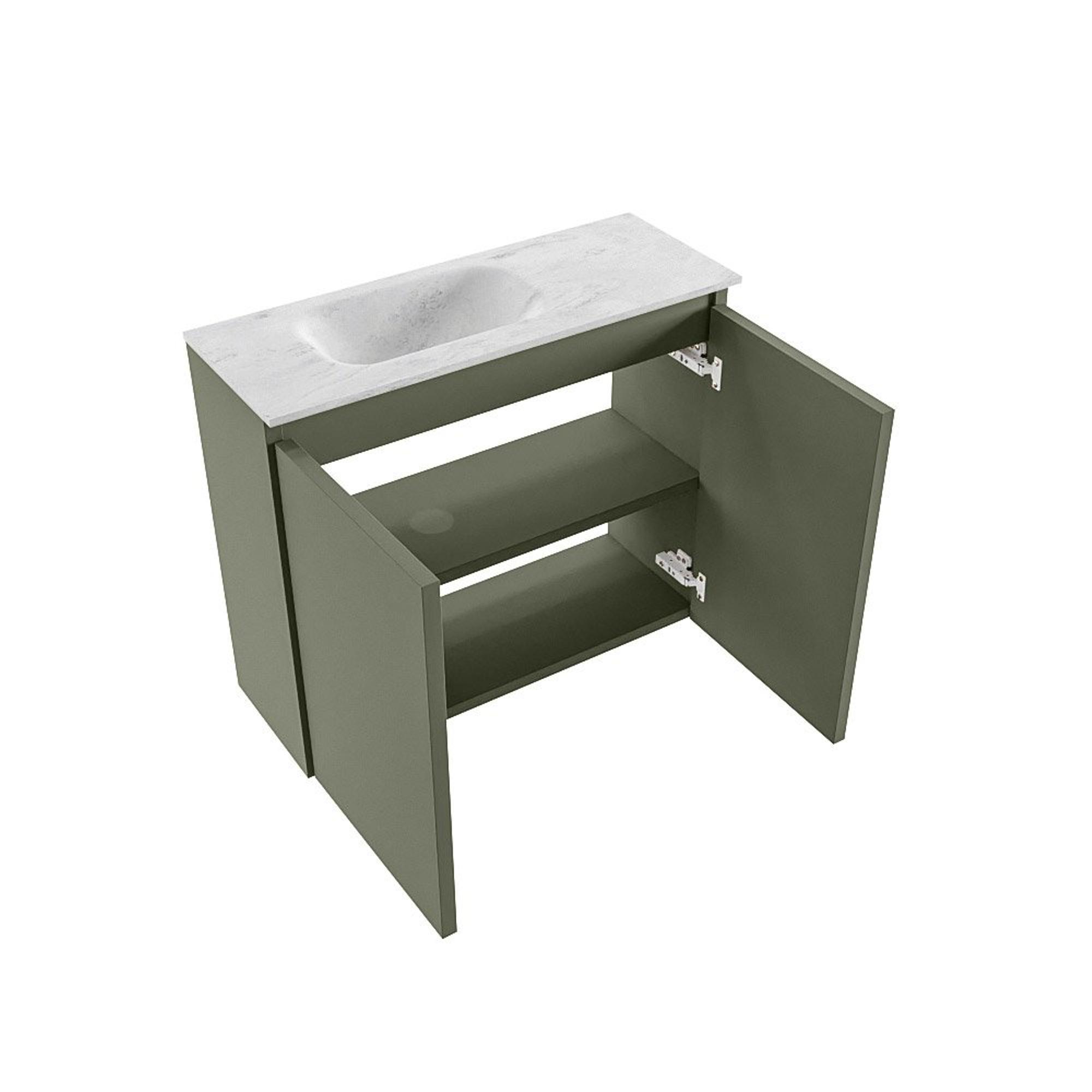 MONDIAZ TURE-DLUX 60cm toiletmeubel Army. EDEN wastafel Opalo positie links. Met 1 kraangat.