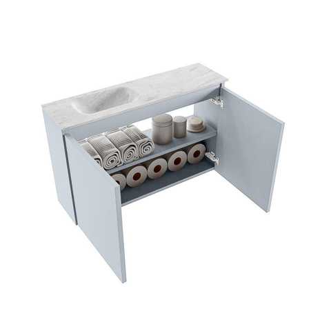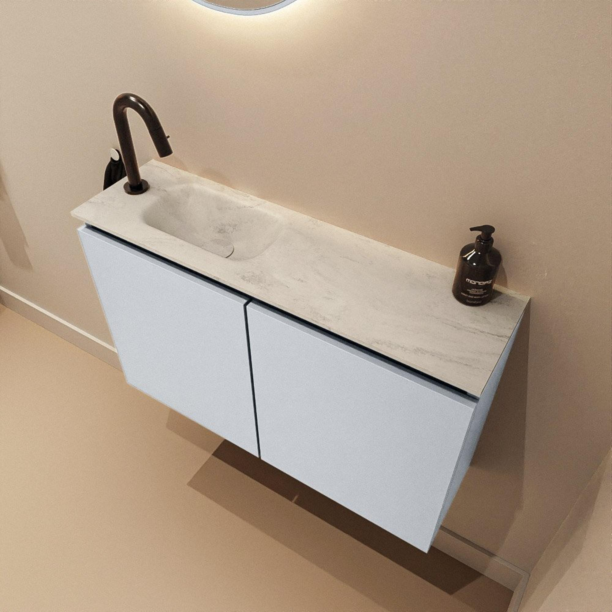 MONDIAZ TURE-DLUX 80cm toiletmeubel Clay. EDEN wastafel Opalo positie links. Met 1 kraangat.