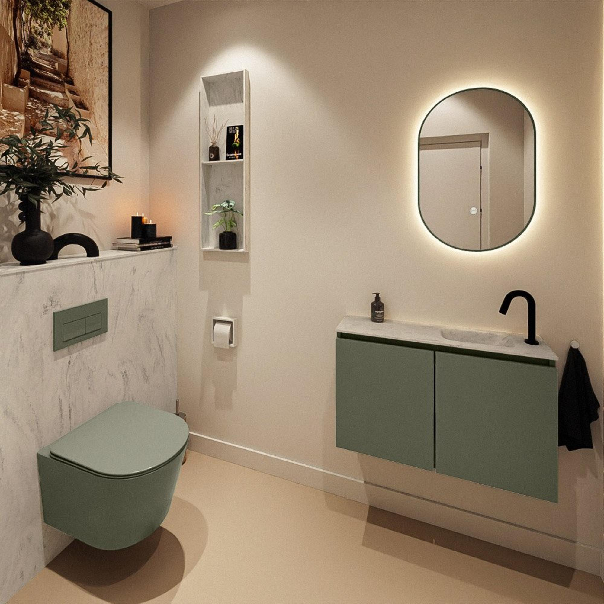 MONDIAZ TURE-DLUX 80cm toiletmeubel Army. EDEN wastafel Opalo positie rechts. Met 1 kraangat.