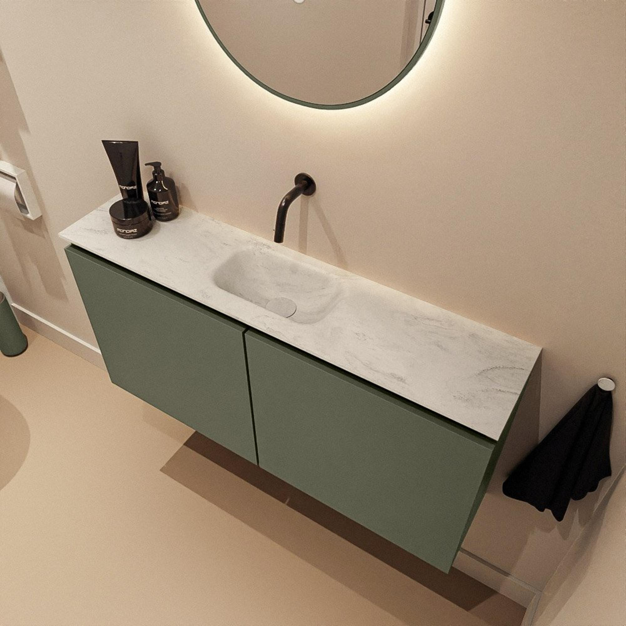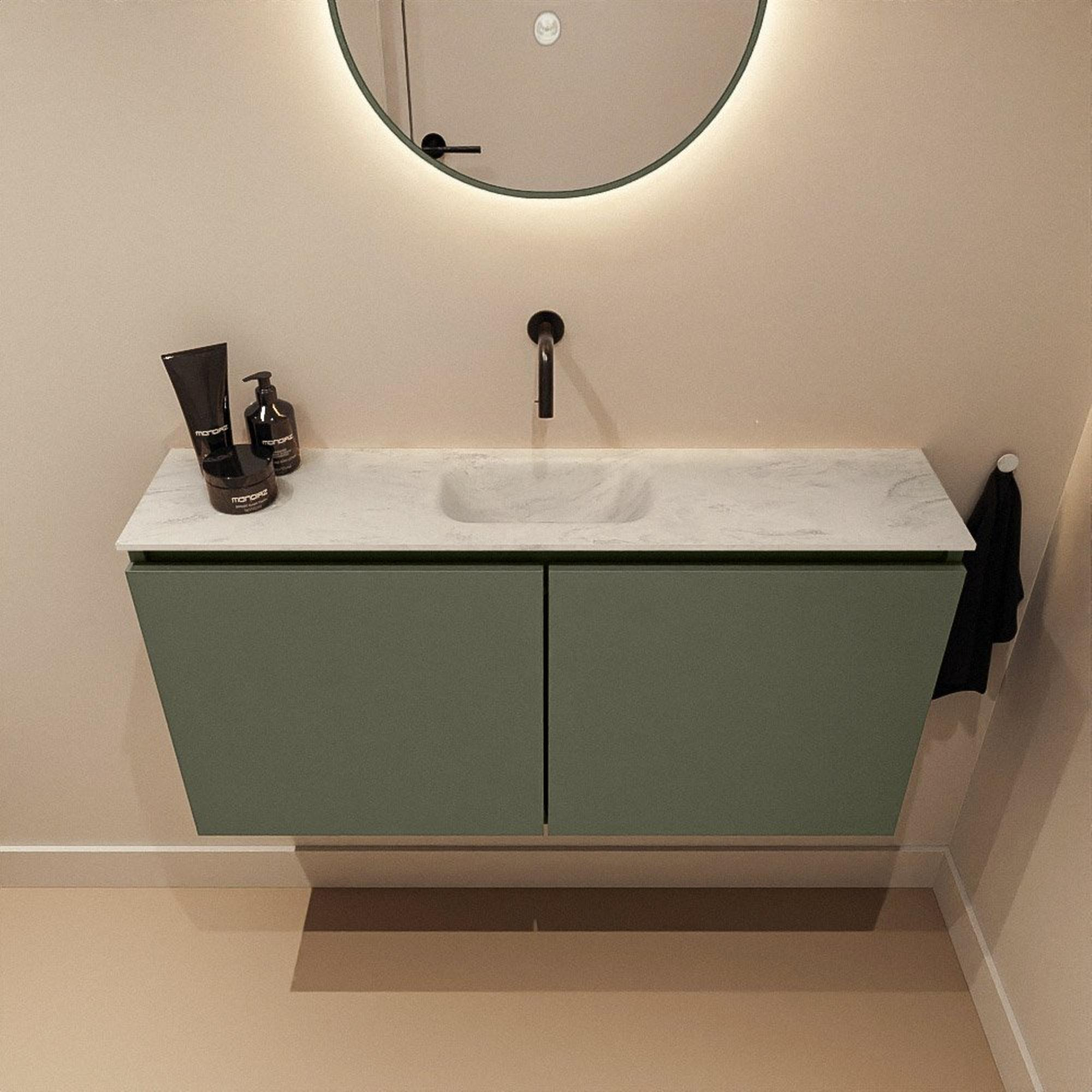 MONDIAZ TURE-DLUX 100cm toiletmeubel Army. EDEN wastafel Opalo positie midden. Zonder kraangat.