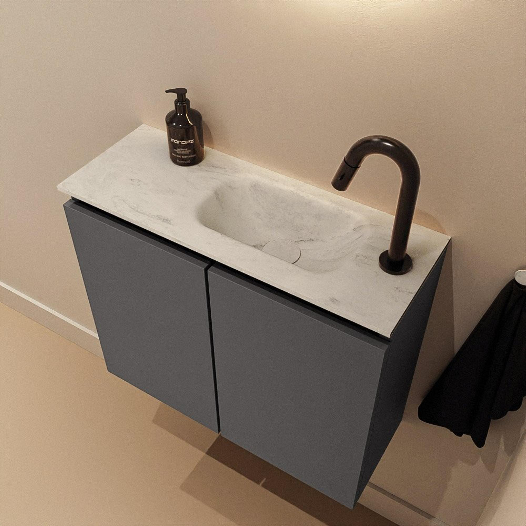 MONDIAZ TURE-DLUX 60cm toiletmeubel Dark Grey. EDEN wastafel Opalo positie rechts. Met 1 kraangat.