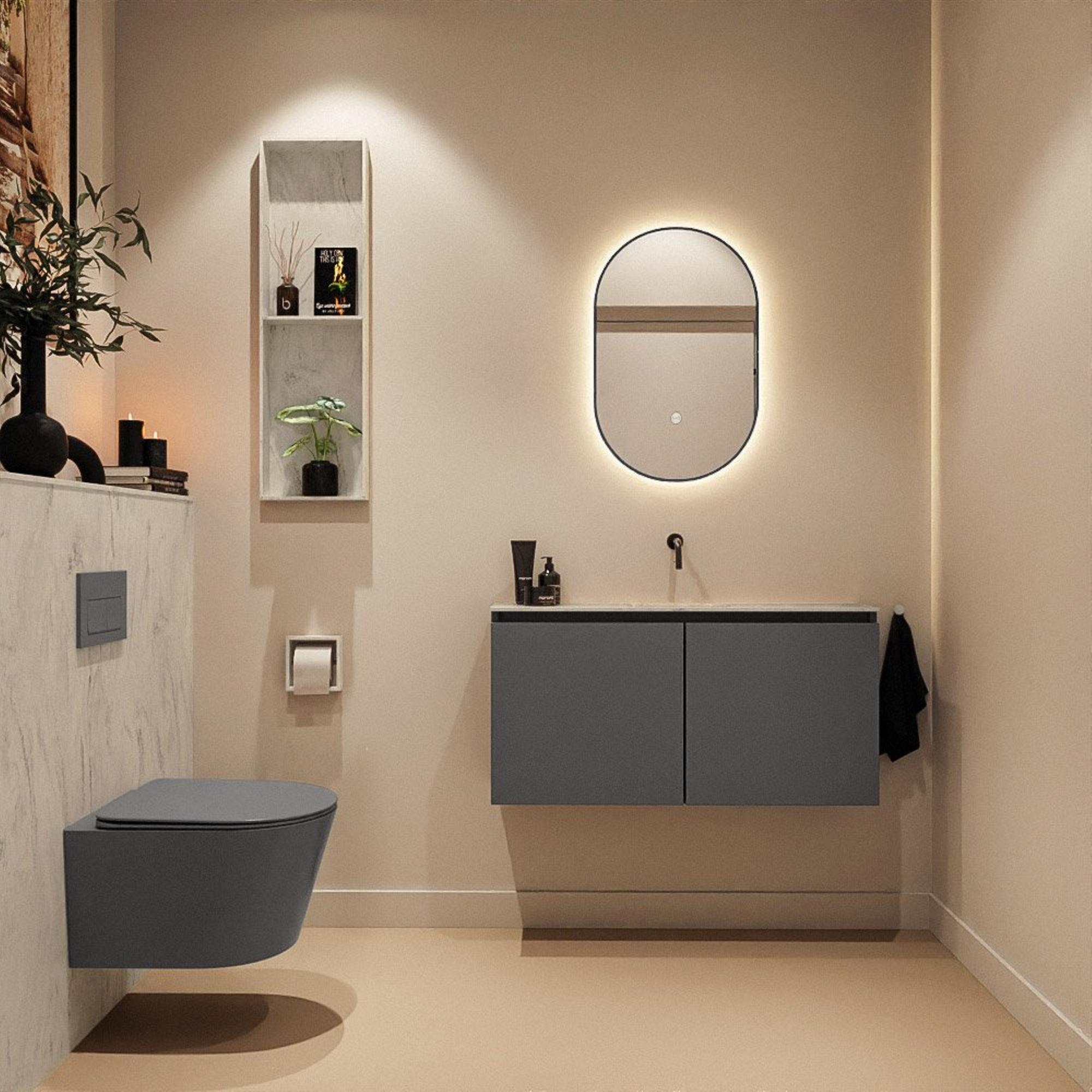 MONDIAZ TURE-DLUX 100cm toiletmeubel Dark Grey. EDEN wastafel Opalo positie midden. Zonder kraangat.
