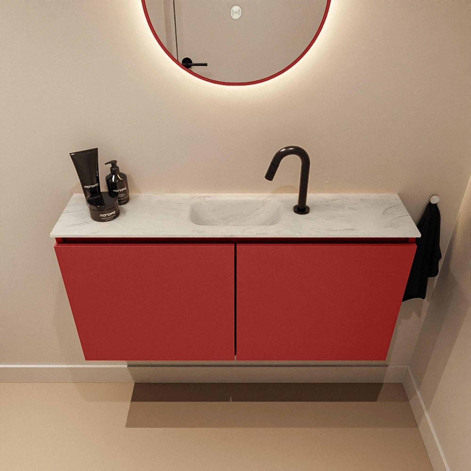 MONDIAZ TURE-DLUX 100cm toiletmeubel Fire. EDEN wastafel Opalo positie midden. Met 1 kraangat.