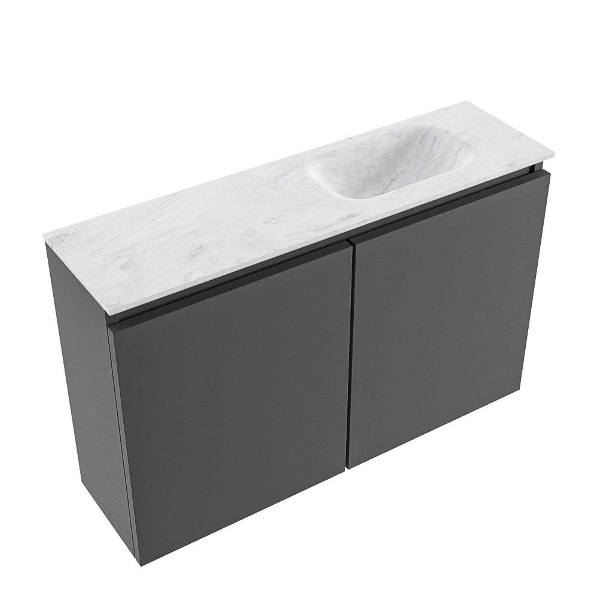 MONDIAZ TURE-DLUX 80cm toiletmeubel Dark Grey. EDEN wastafel Opalo positie rechts. Zonder kraangat.