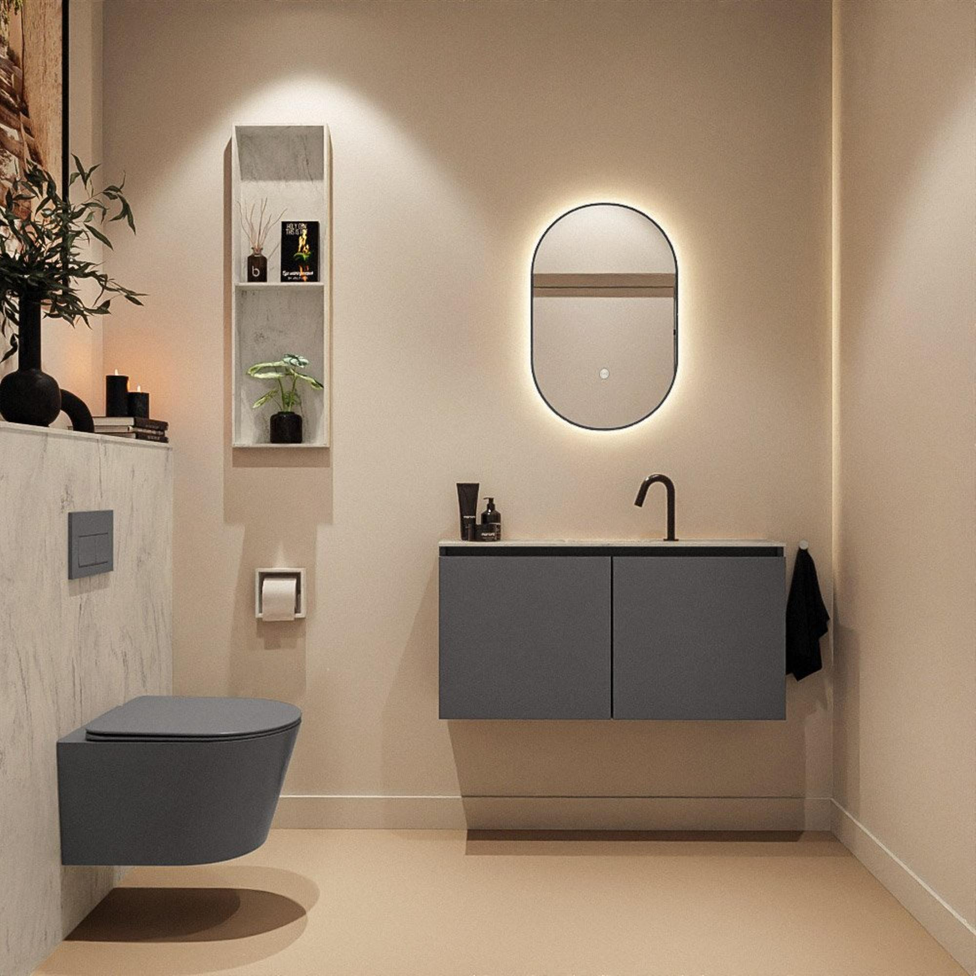 MONDIAZ TURE-DLUX 100cm toiletmeubel Dark Grey. EDEN wastafel Opalo positie midden. Met 1 kraangat.