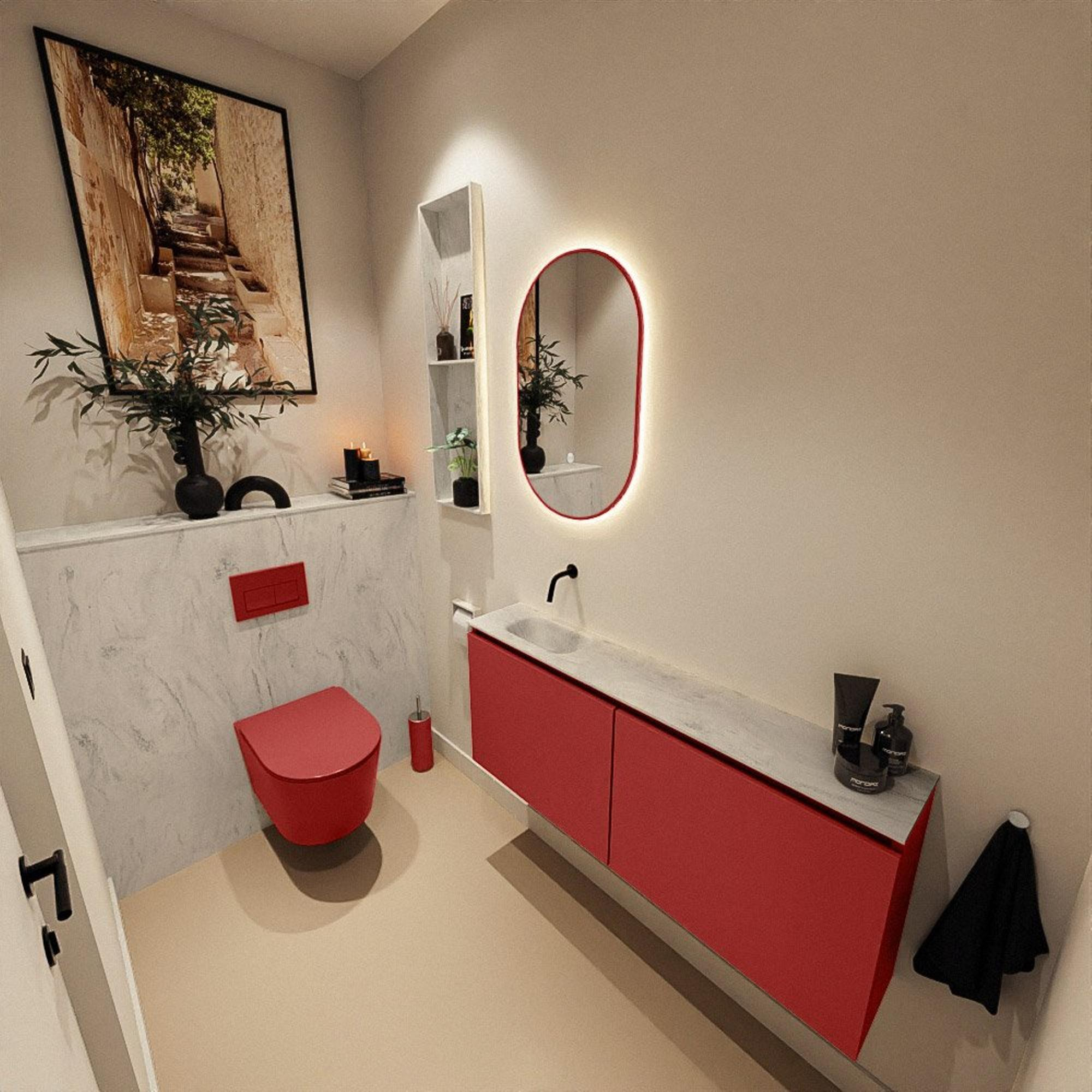 MONDIAZ TURE-DLUX 120cm toiletmeubel Fire. EDEN wastafel Opalo positie links. Zonder kraangat.