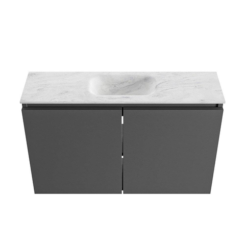 MONDIAZ TURE-DLUX 80cm toiletmeubel Dark Grey. EDEN wastafel Opalo positie midden. Met 1 kraangat.