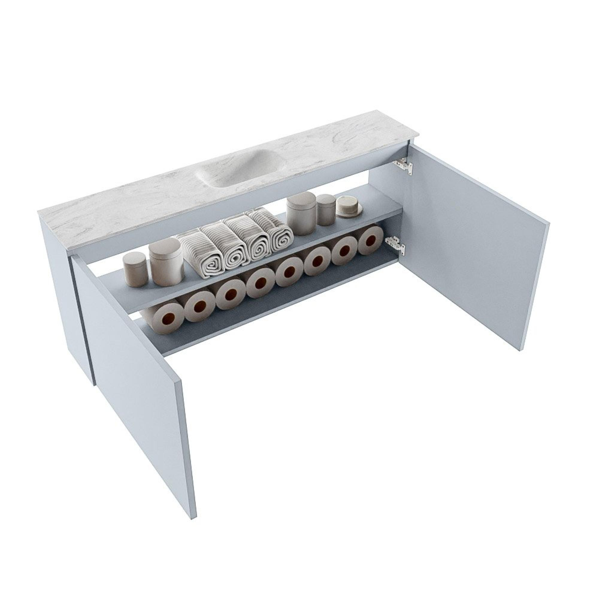 MONDIAZ TURE-DLUX 120cm toiletmeubel Clay. EDEN wastafel Opalo positie midden. Met 1 kraangat.