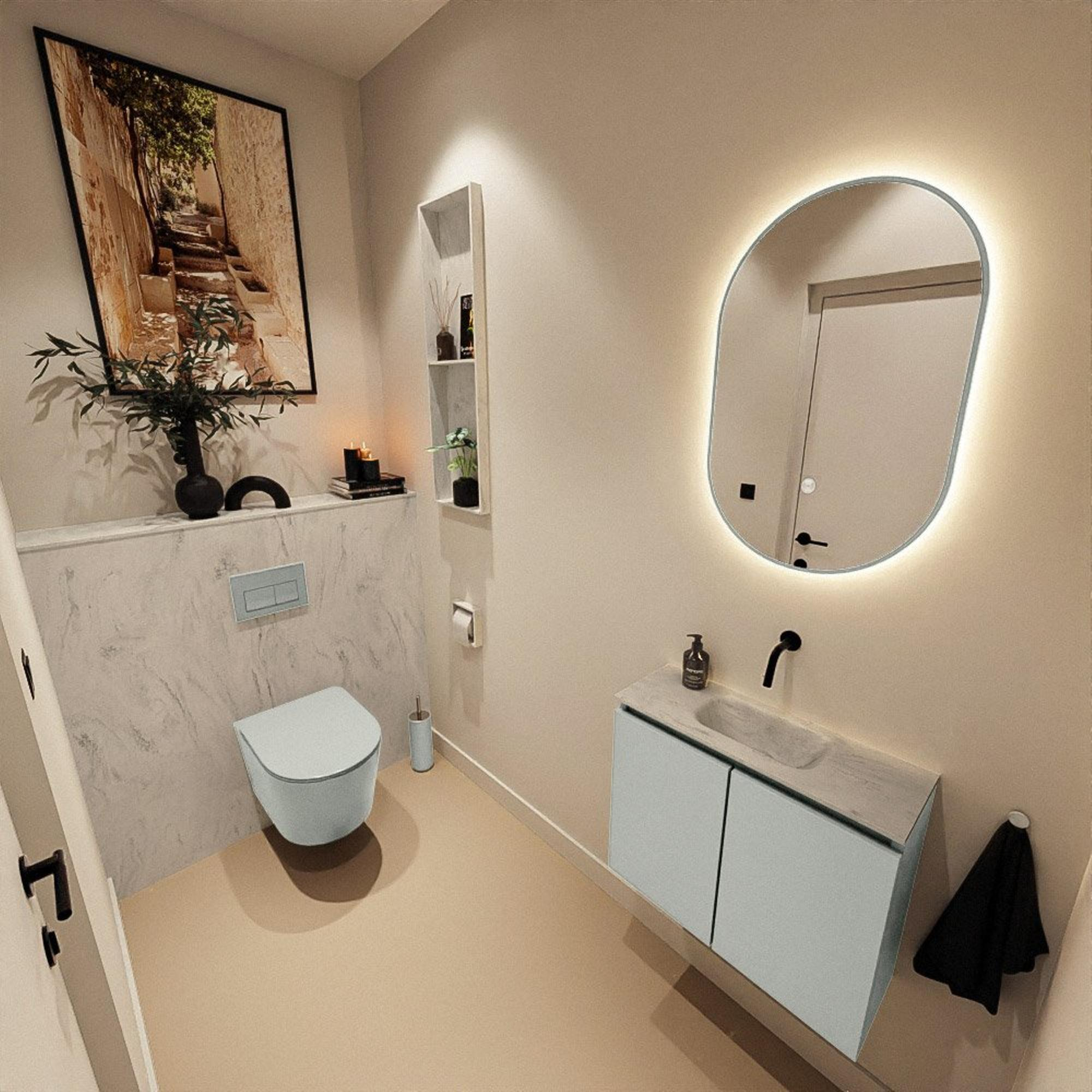 MONDIAZ TURE-DLUX 60cm toiletmeubel Greey. EDEN wastafel Opalo positie midden. Zonder kraangat.