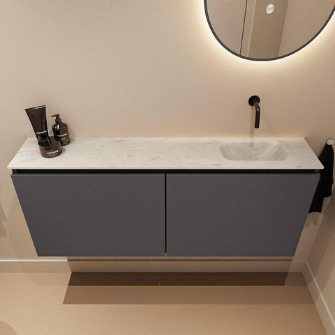 MONDIAZ TURE-DLUX 120cm toiletmeubel Dark Grey. EDEN wastafel Opalo positie rechts. Zonder kraangat.