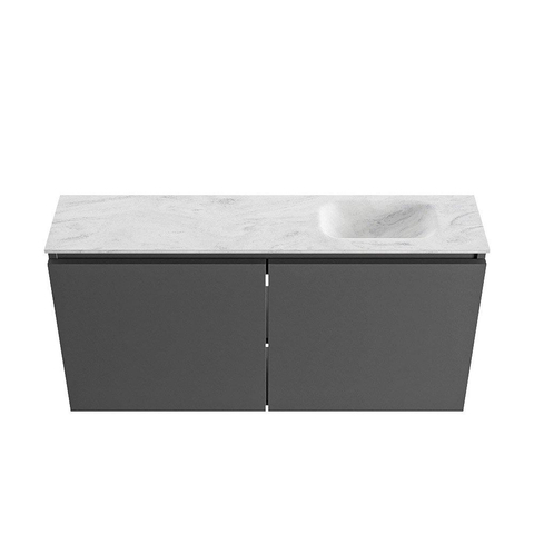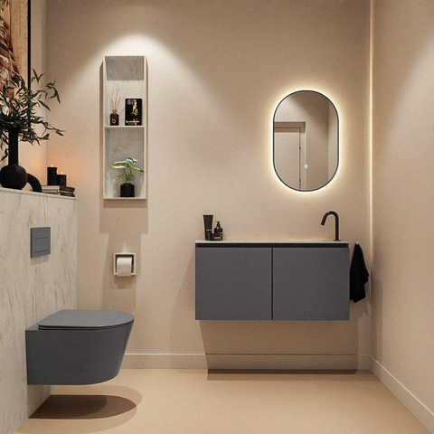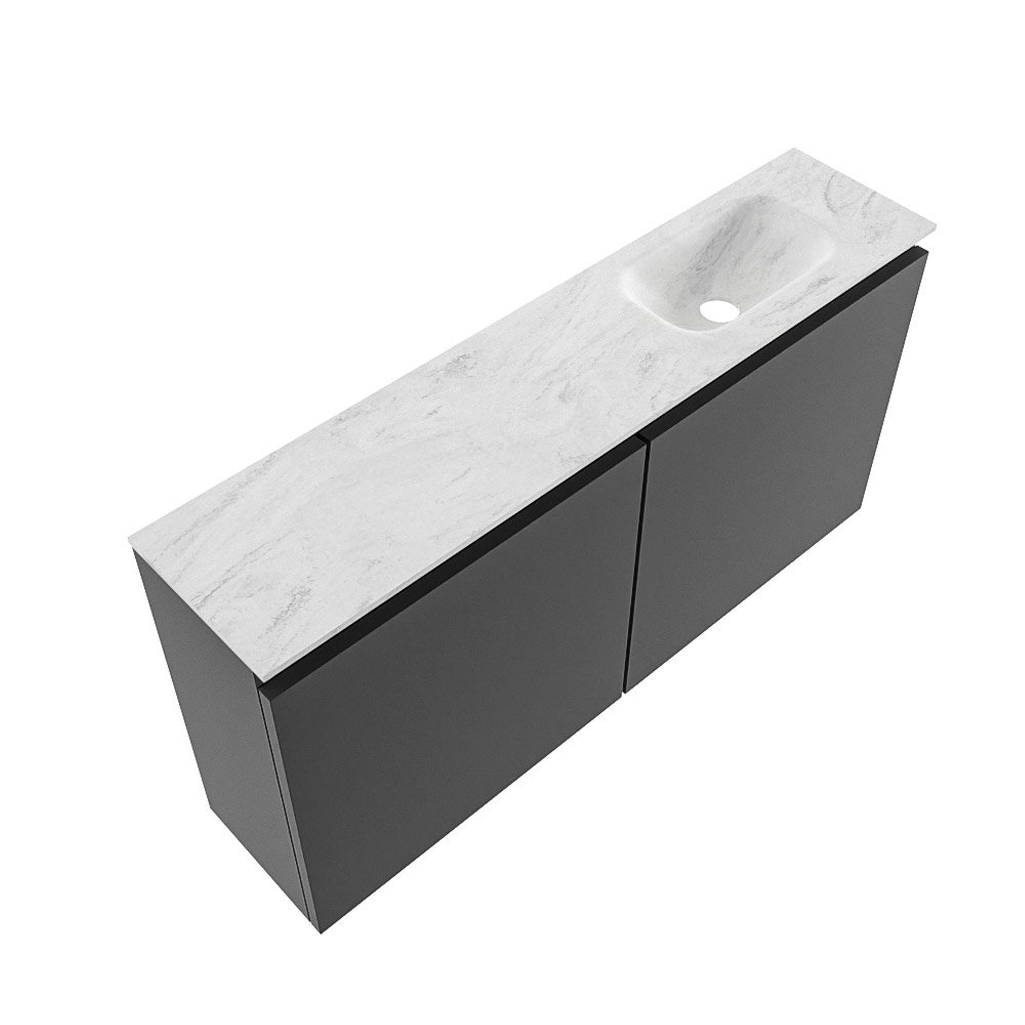 MONDIAZ TURE-DLUX 100cm toiletmeubel Dark Grey. EDEN wastafel Opalo positie rechts. Met 1 kraangat.