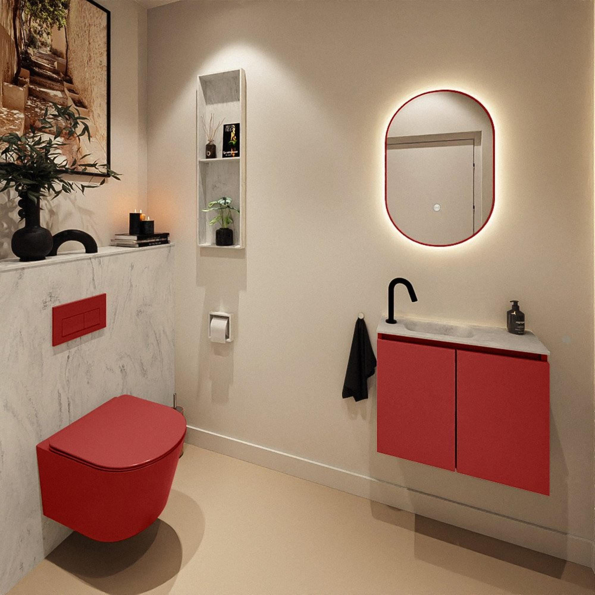 MONDIAZ TURE-DLUX 60cm toiletmeubel Fire. EDEN wastafel Opalo positie links. Met 1 kraangat.