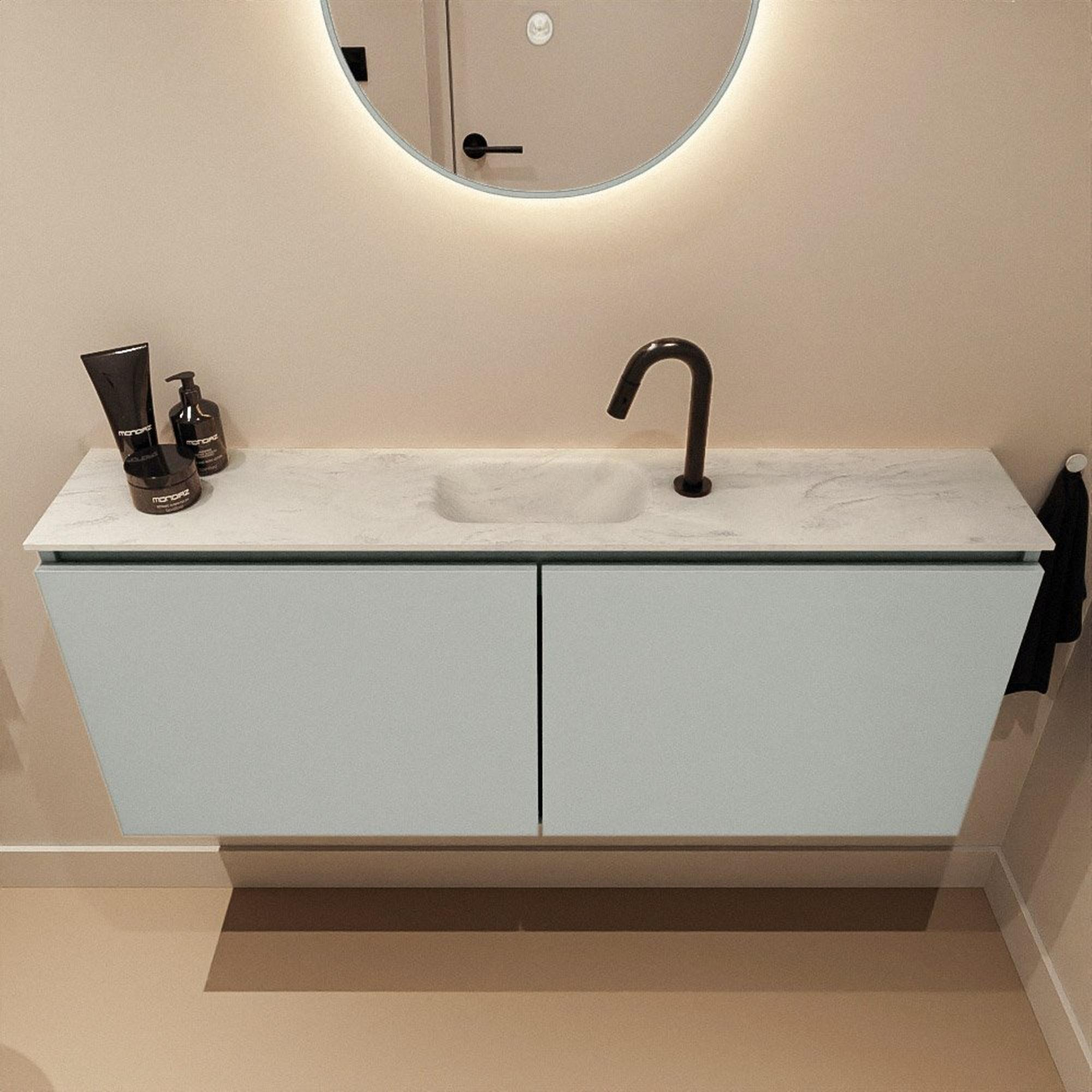 MONDIAZ TURE-DLUX 120cm toiletmeubel Greey. EDEN wastafel Opalo positie midden. Met 1 kraangat.