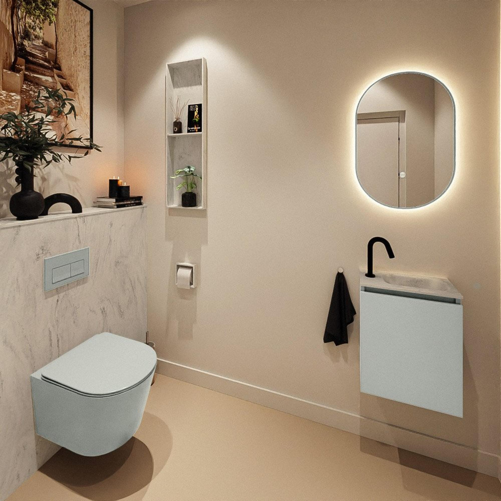 MONDIAZ TURE-DLUX 40cm toiletmeubel Greey. EDEN wastafel Opalo positie rechts. Met 1 kraangat.