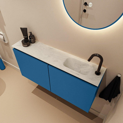 MONDIAZ TURE-DLUX 100cm toiletmeubel Jeans. EDEN wastafel Opalo positie rechts. Met 1 kraangat.