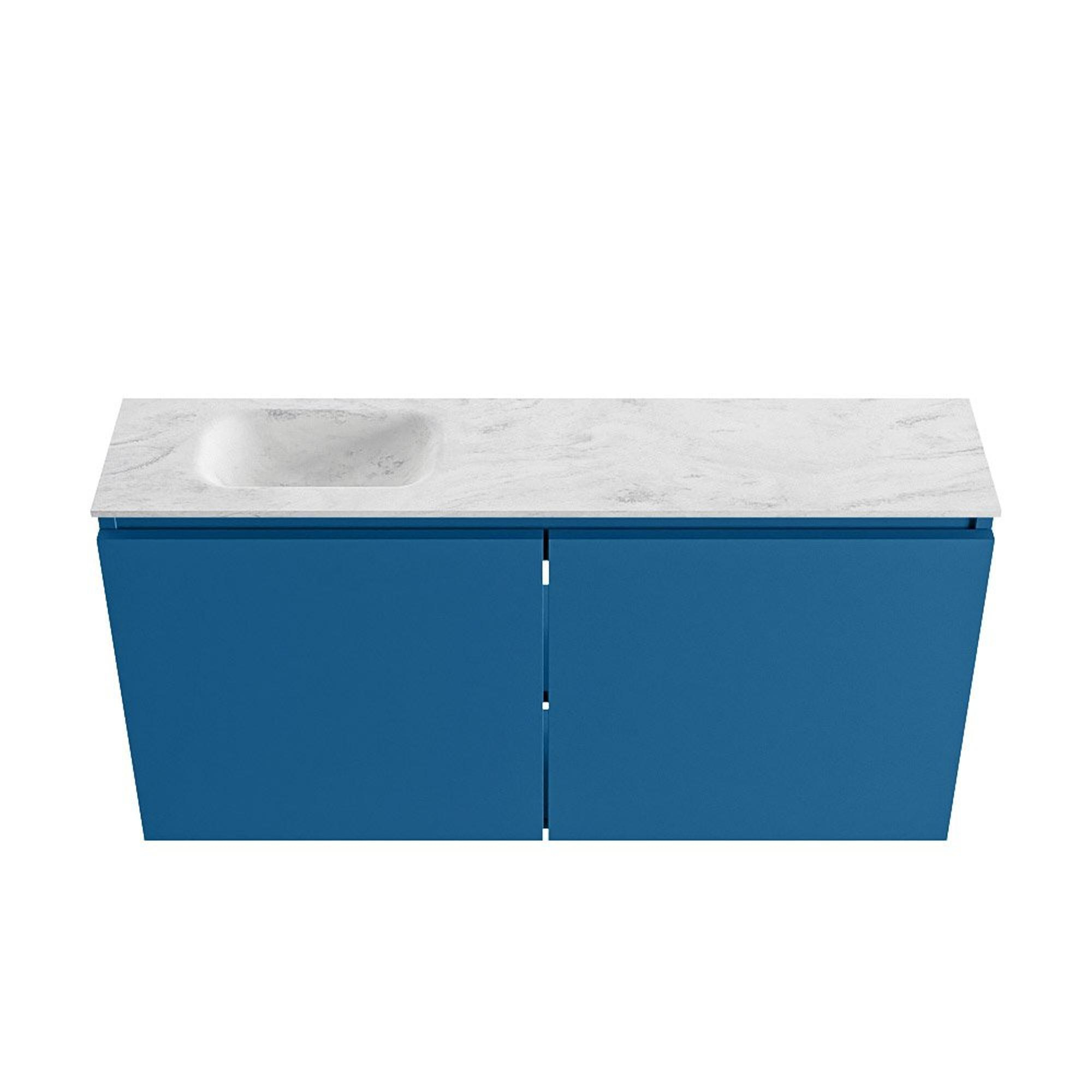 MONDIAZ TURE-DLUX 100cm toiletmeubel Jeans. EDEN wastafel Opalo positie links. Zonder kraangat.