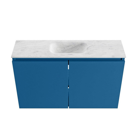 MONDIAZ TURE-DLUX 80cm toiletmeubel Jeans. EDEN wastafel Opalo positie midden. Met 1 kraangat.