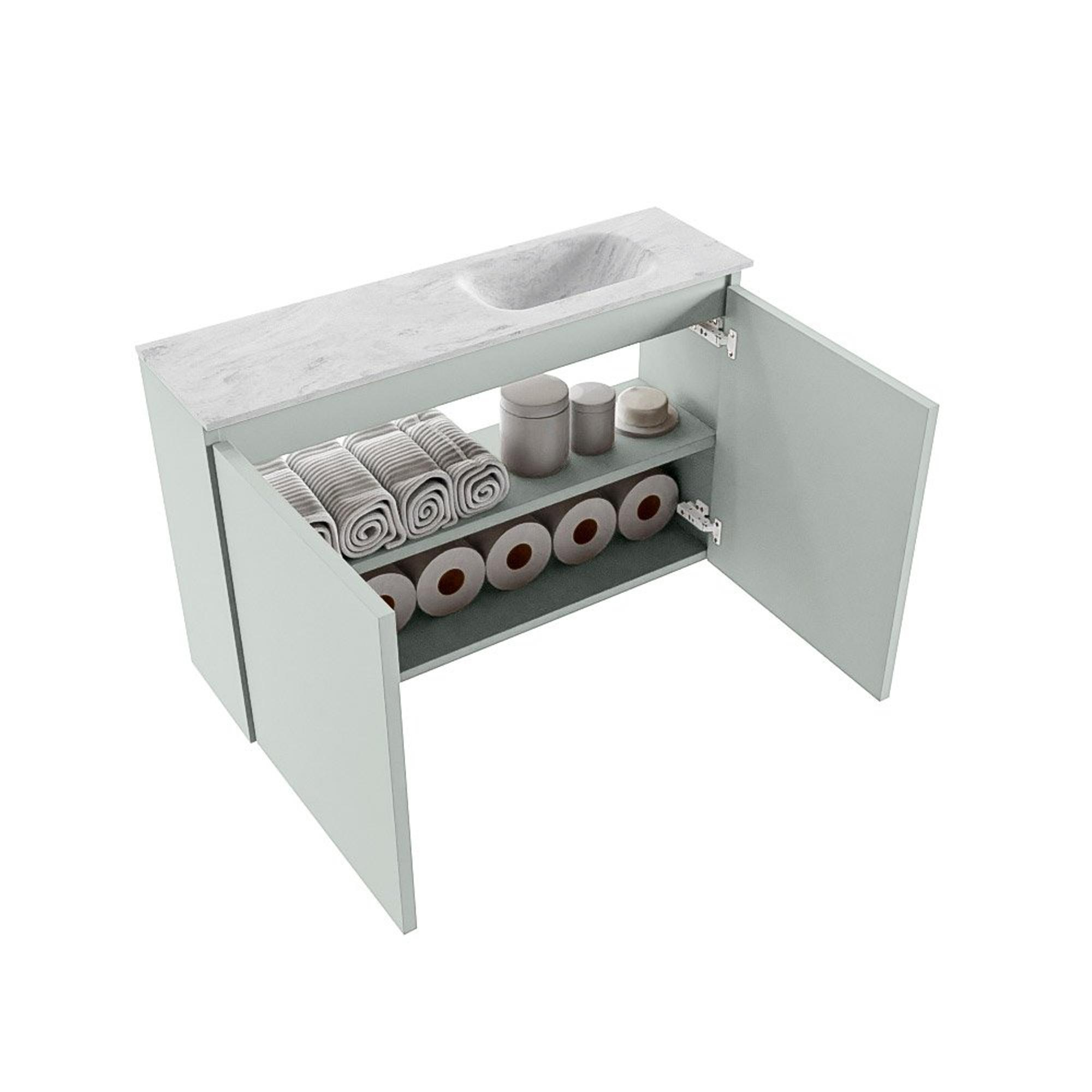 MONDIAZ TURE-DLUX 80cm toiletmeubel Greey. EDEN wastafel Opalo positie rechts. Met 1 kraangat.