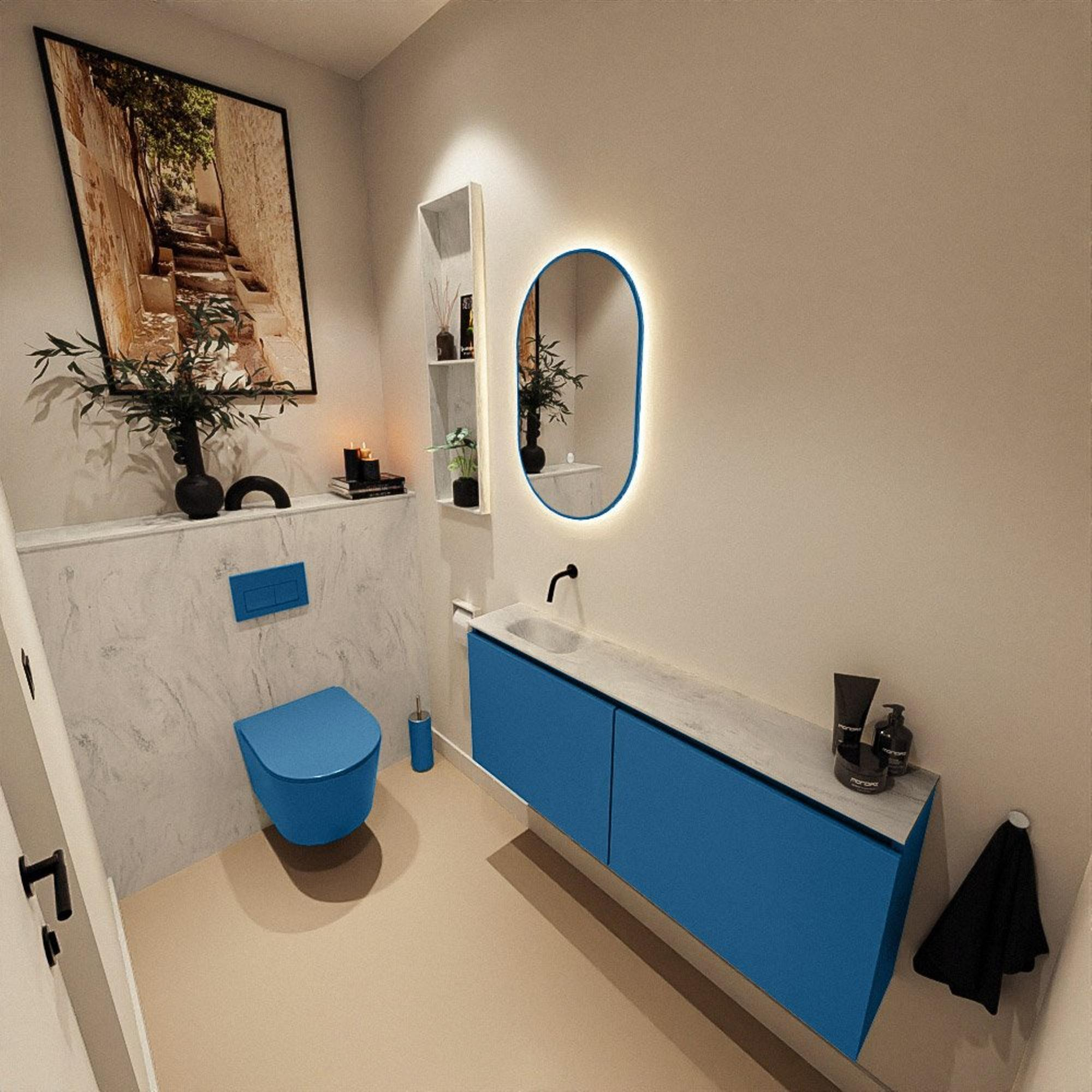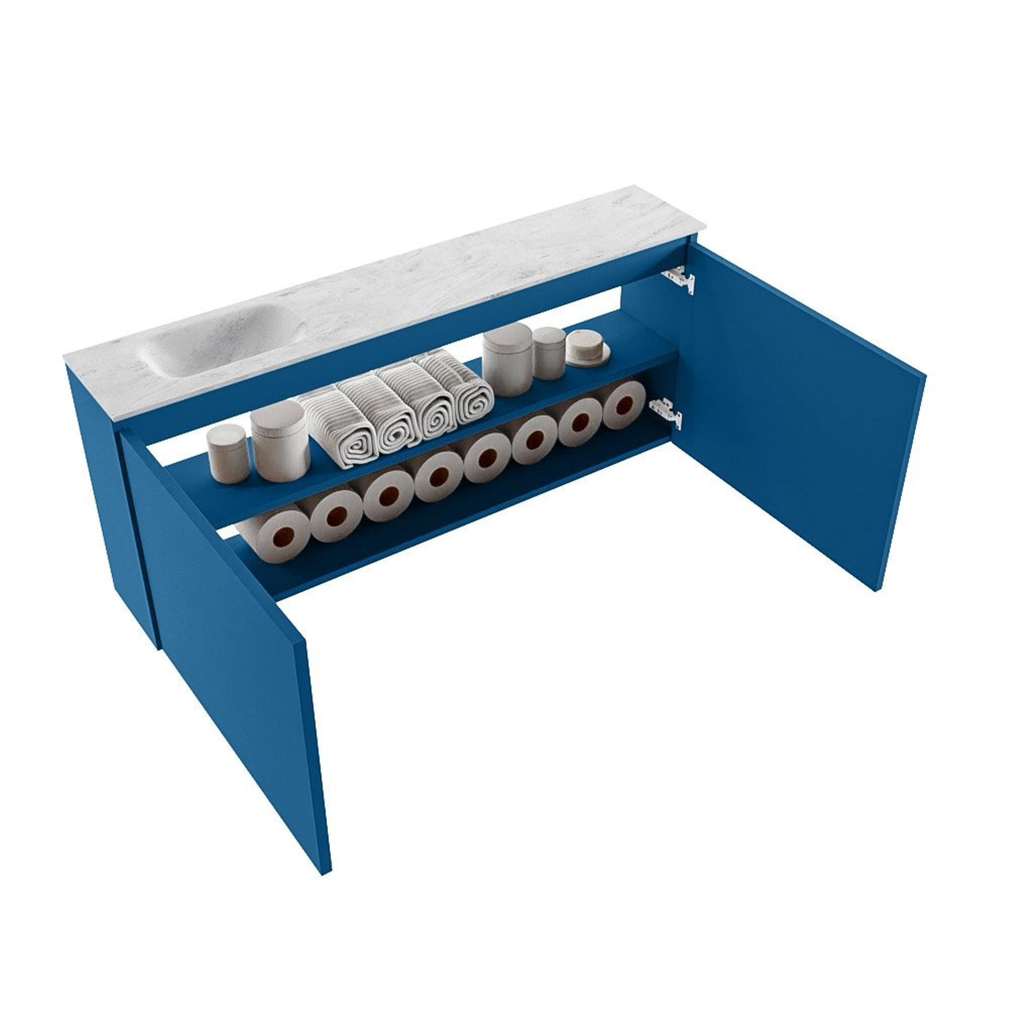 MONDIAZ TURE-DLUX 120cm toiletmeubel Jeans. EDEN wastafel Opalo positie links. Zonder kraangat.