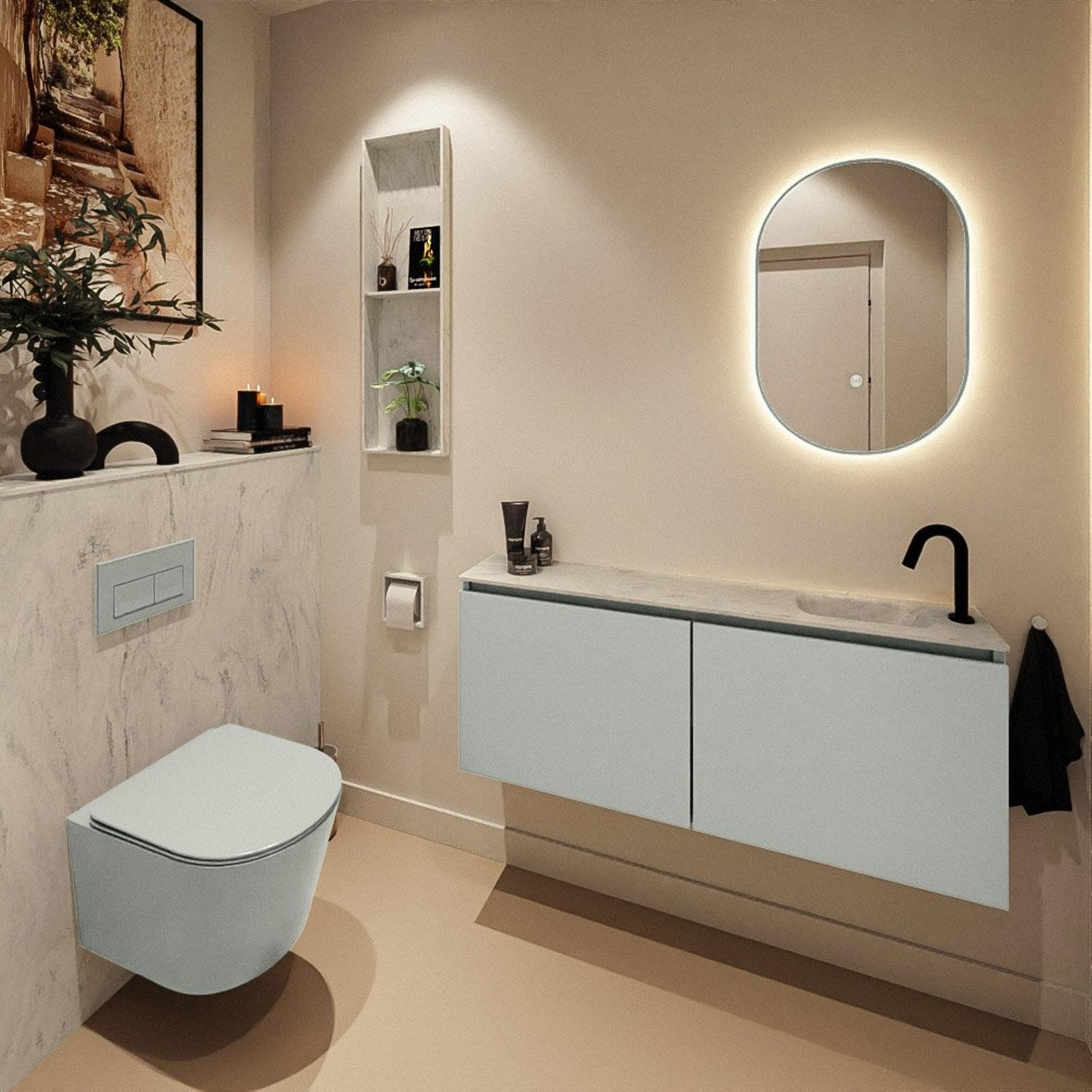 MONDIAZ TURE-DLUX 120cm toiletmeubel Greey. EDEN wastafel Opalo positie rechts. Met 1 kraangat.
