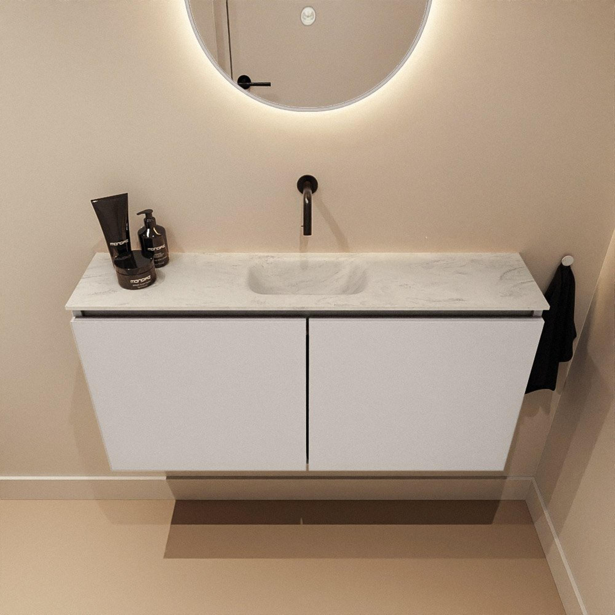 MONDIAZ TURE-DLUX 100cm toiletmeubel Linen. EDEN wastafel Opalo positie midden. Zonder kraangat.