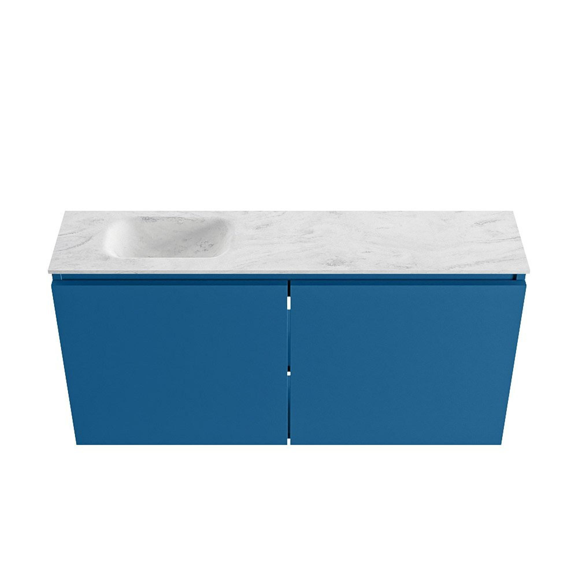 MONDIAZ TURE-DLUX 100cm toiletmeubel Jeans. EDEN wastafel Opalo positie links. Met 1 kraangat.