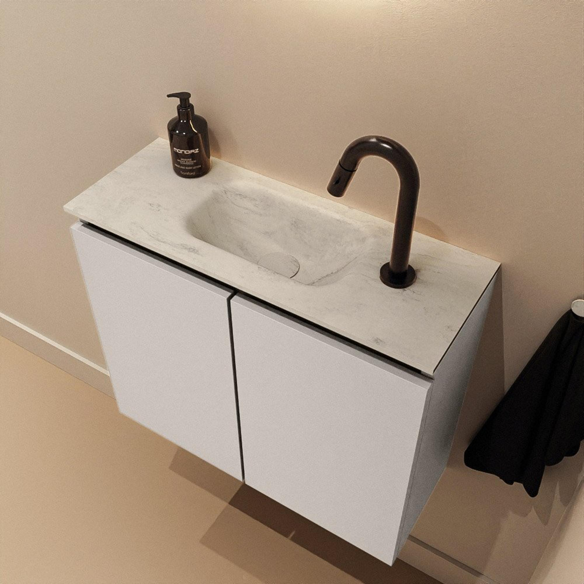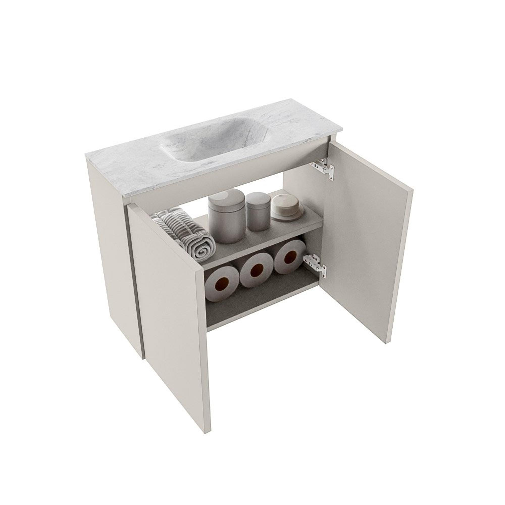 MONDIAZ TURE-DLUX 60cm toiletmeubel Linen. EDEN wastafel Opalo positie midden. Met 1 kraangat.