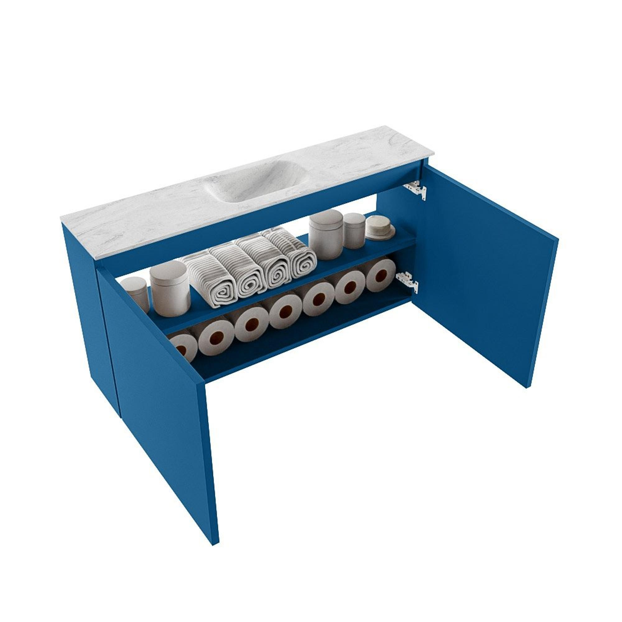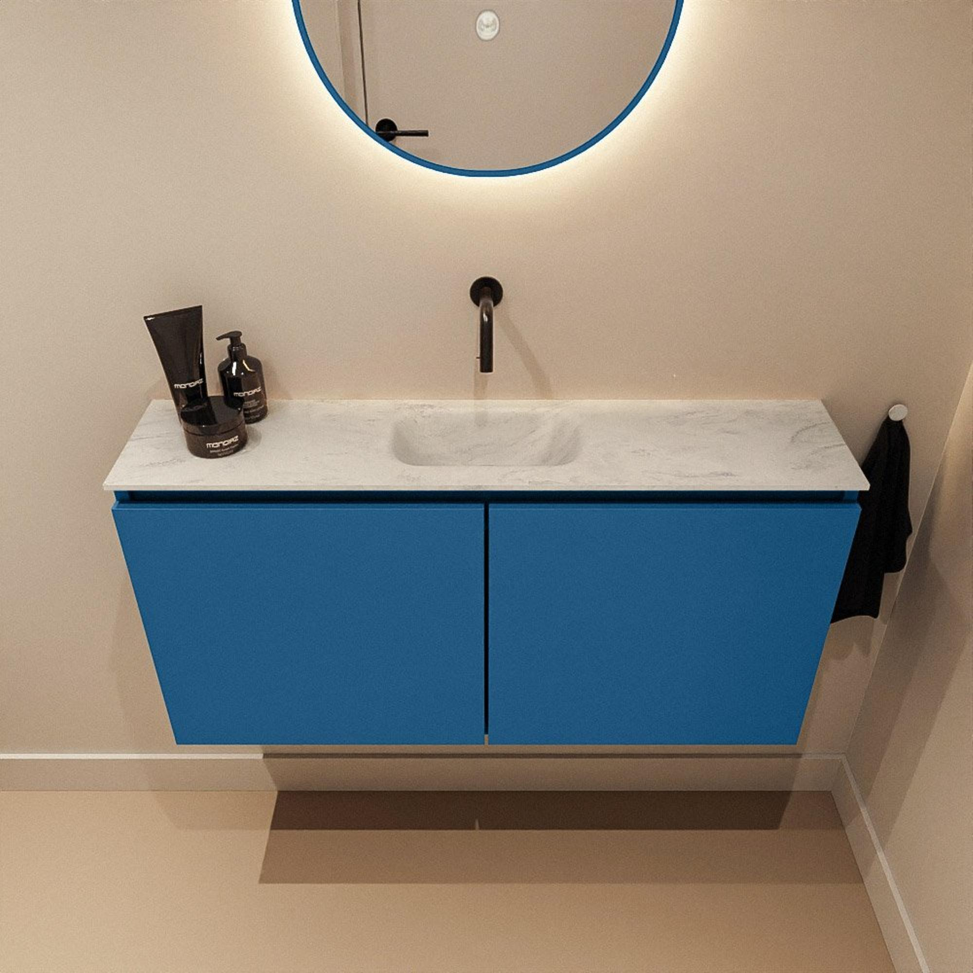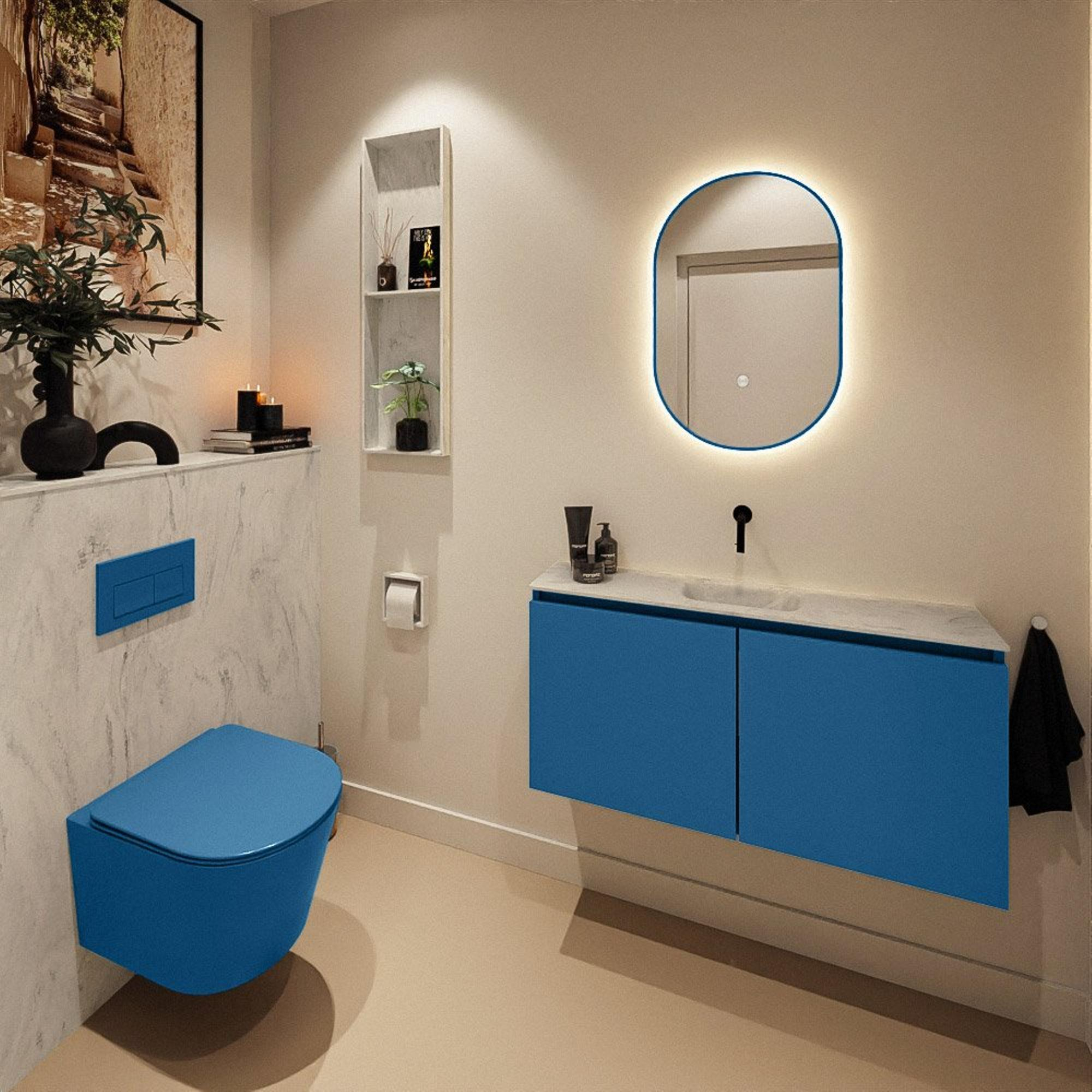 MONDIAZ TURE-DLUX 100cm toiletmeubel Jeans. EDEN wastafel Opalo positie midden. Zonder kraangat.