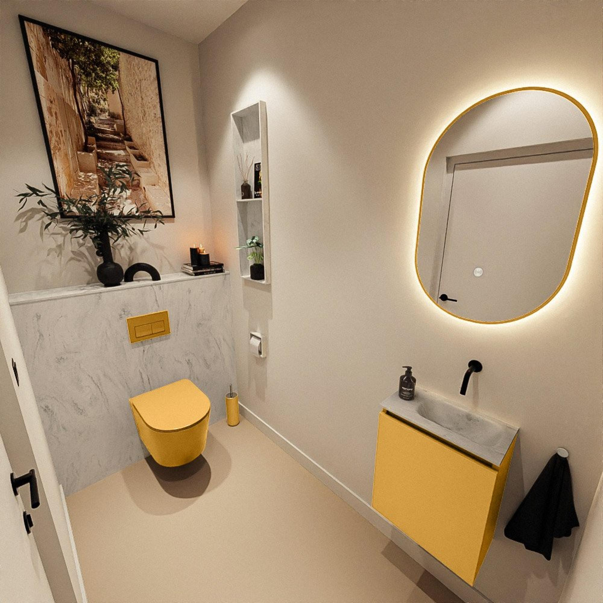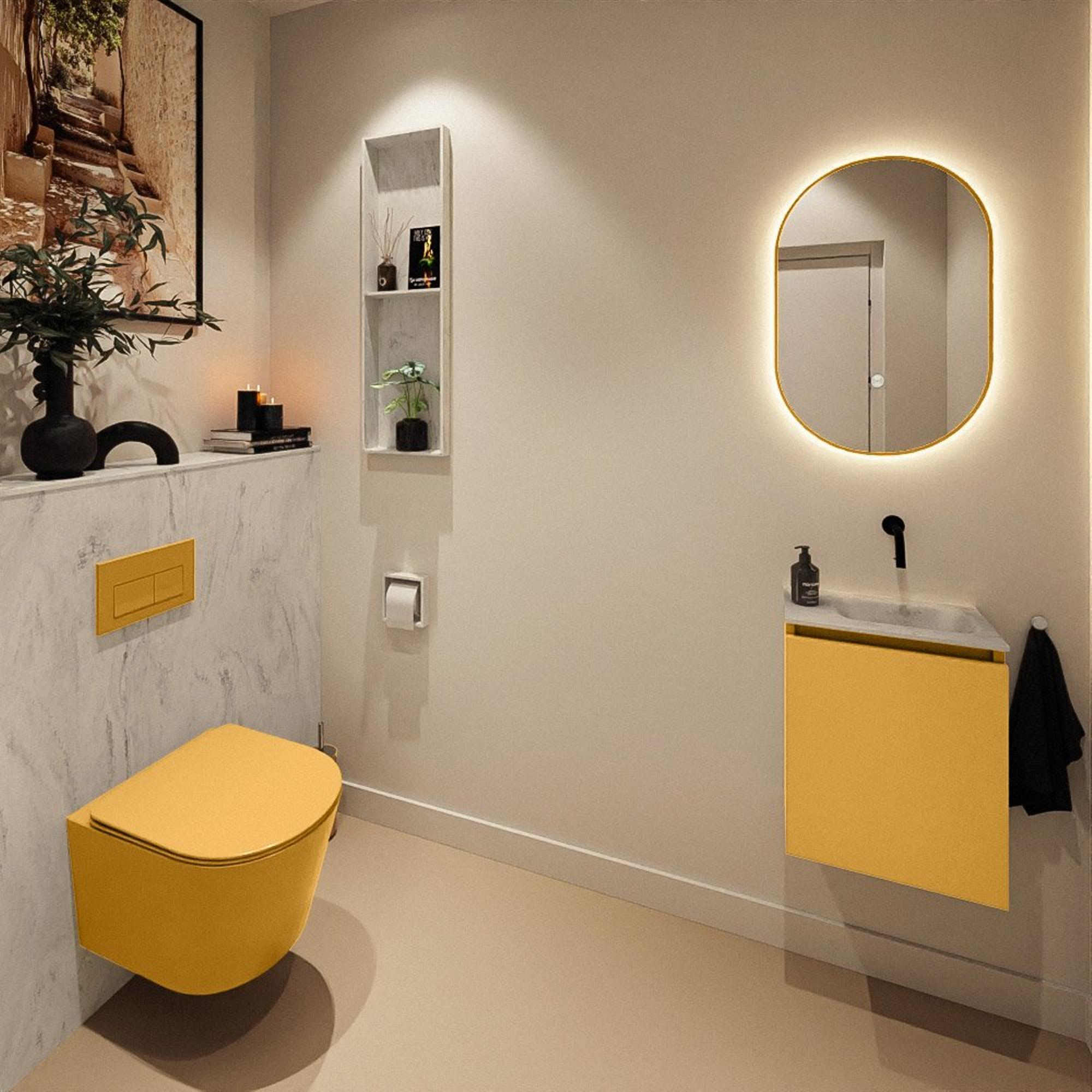 MONDIAZ TURE-DLUX 40cm toiletmeubel Ocher. EDEN wastafel Opalo positie rechts. Zonder kraangat.