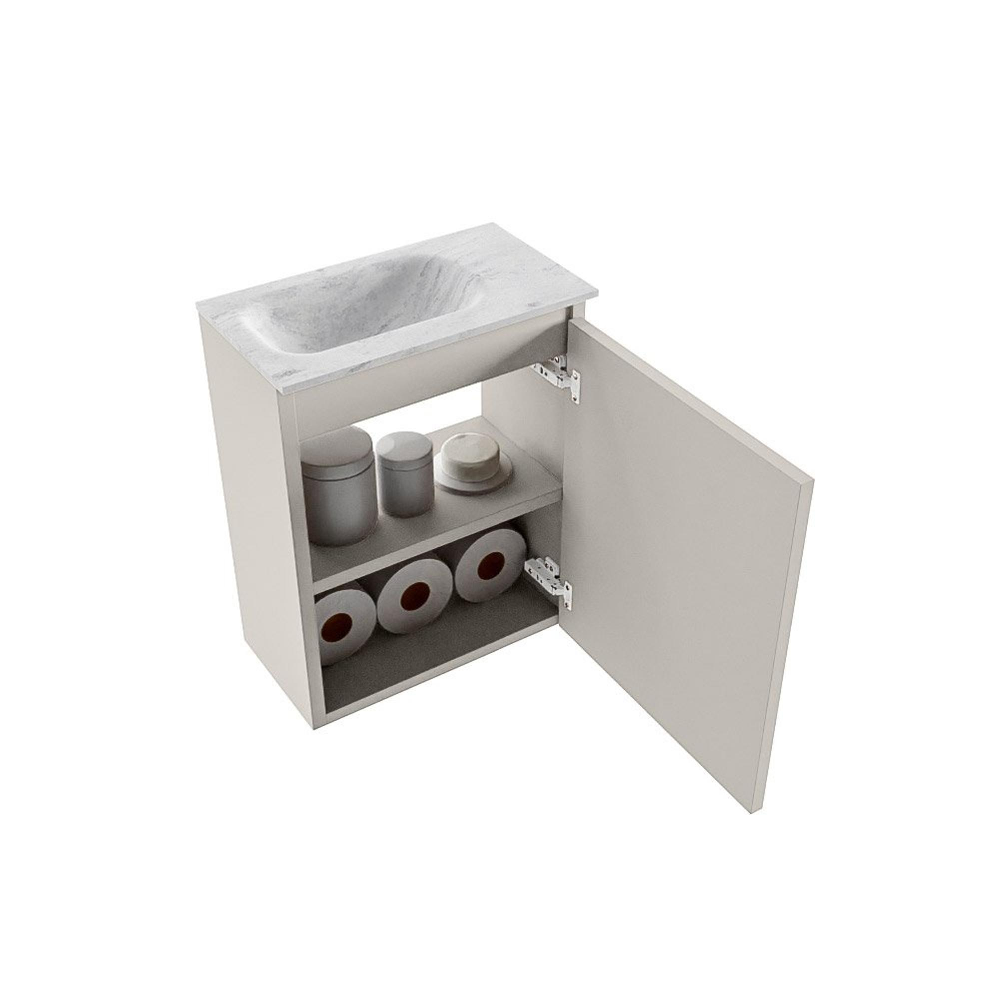MONDIAZ TURE-DLUX 40cm toiletmeubel Linen. EDEN wastafel Opalo positie links. Met 1 kraangat.