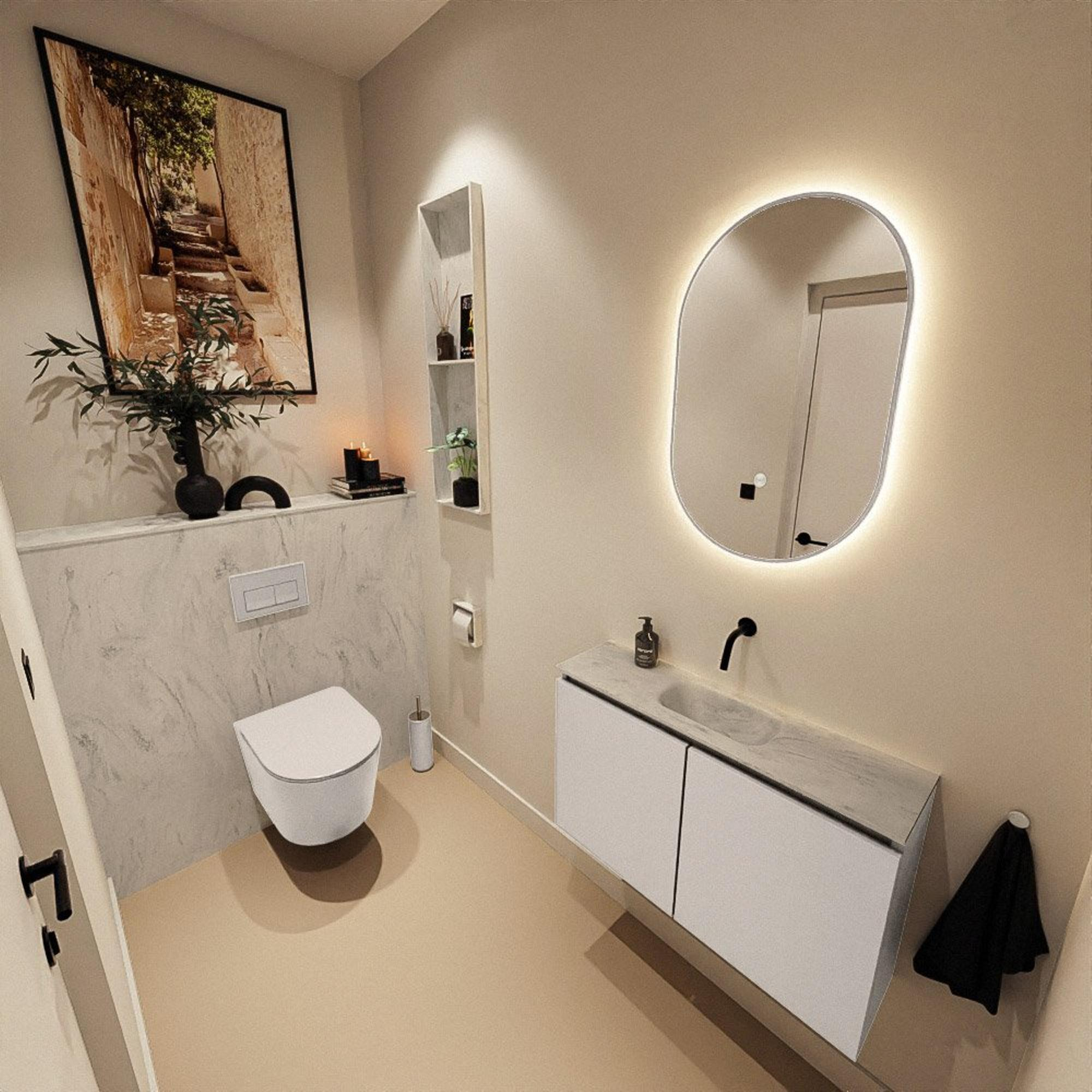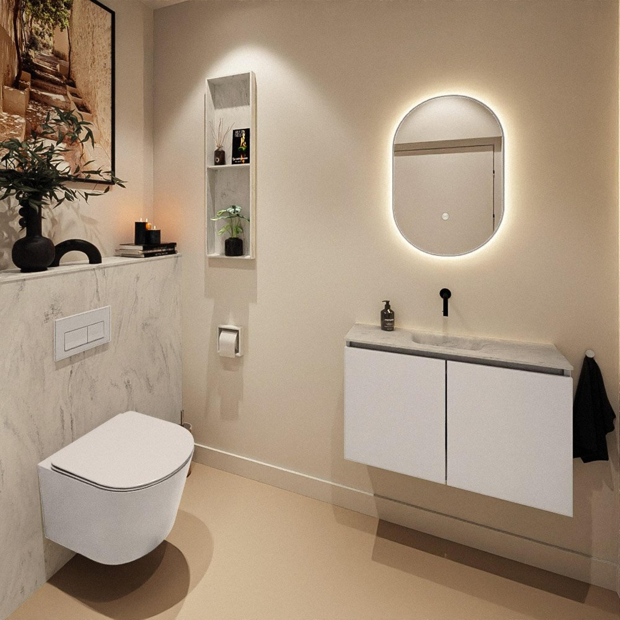MONDIAZ TURE-DLUX 80cm toiletmeubel Linen. EDEN wastafel Opalo positie midden. Zonder kraangat.