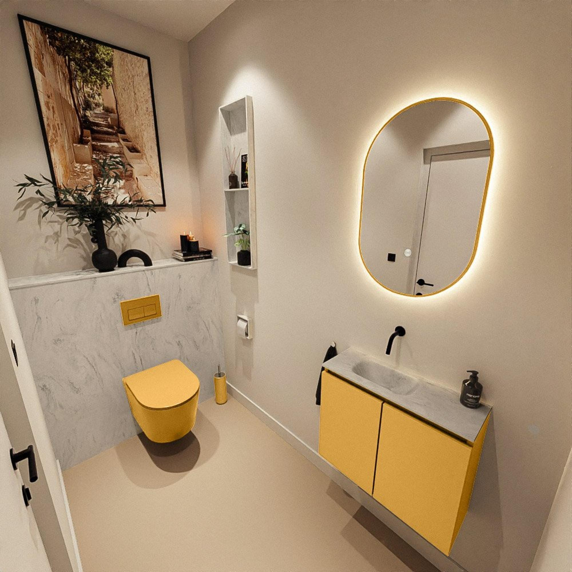 MONDIAZ TURE-DLUX 60cm toiletmeubel Ocher. EDEN wastafel Opalo positie links. Zonder kraangat.