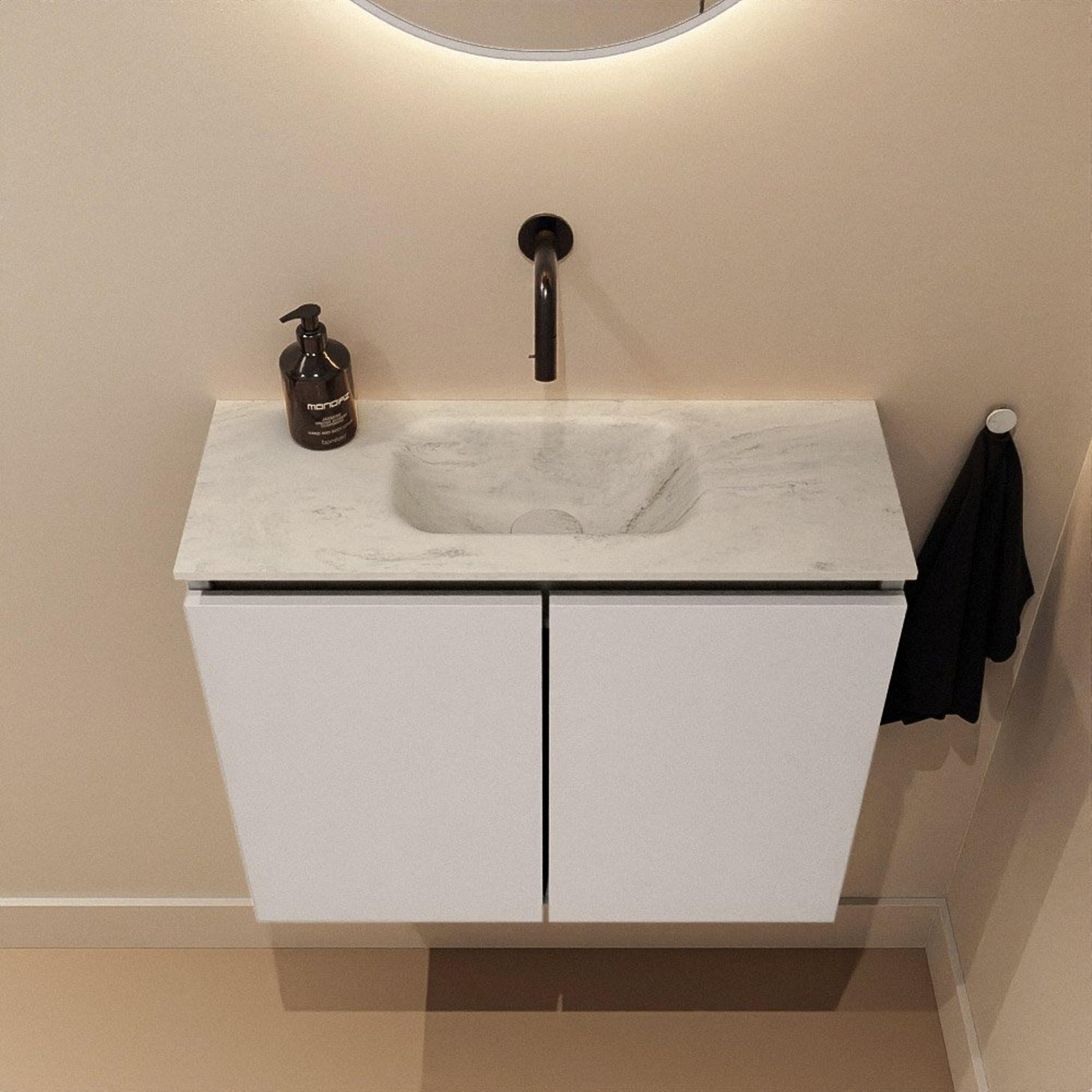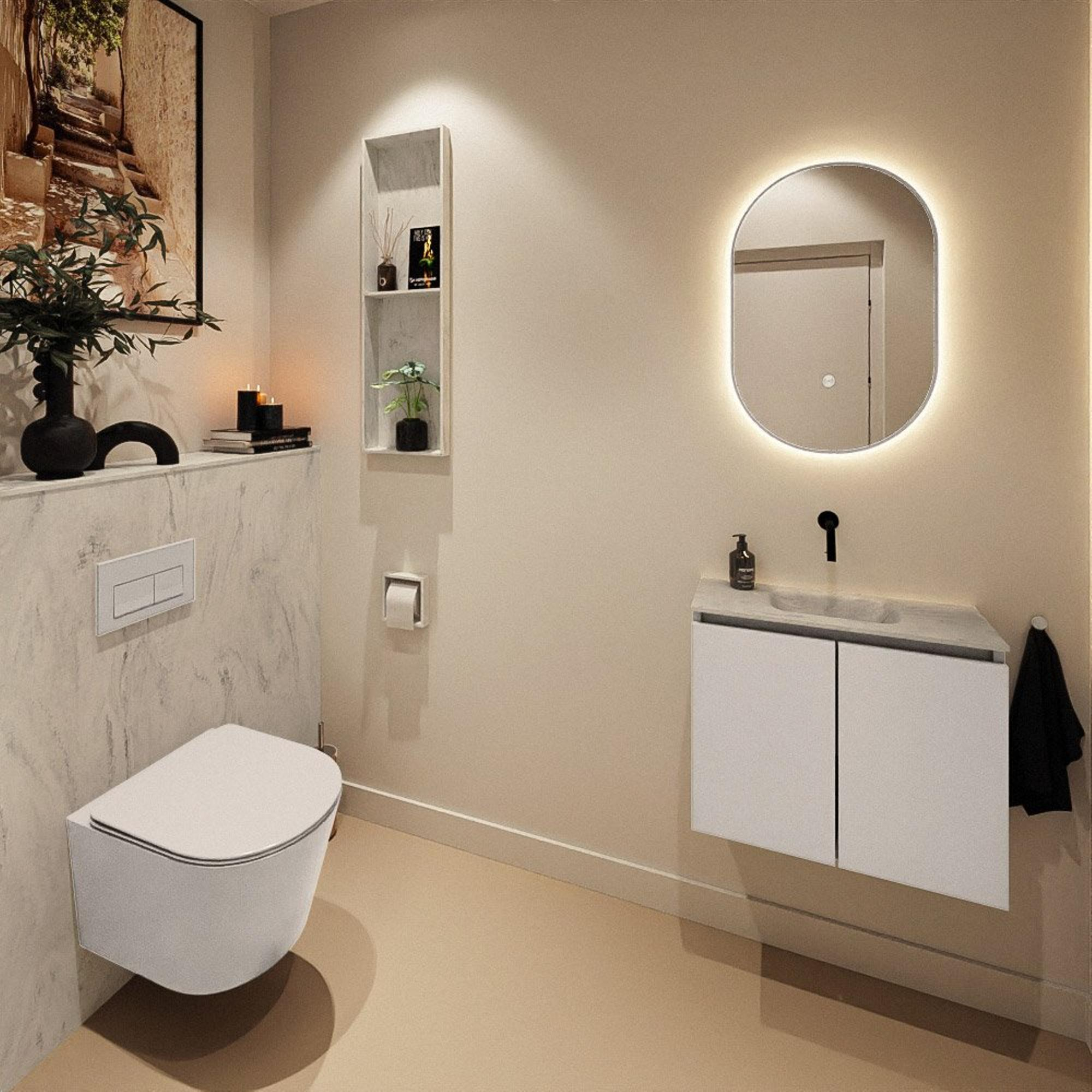 MONDIAZ TURE-DLUX 60cm toiletmeubel Linen. EDEN wastafel Opalo positie midden. Zonder kraangat.