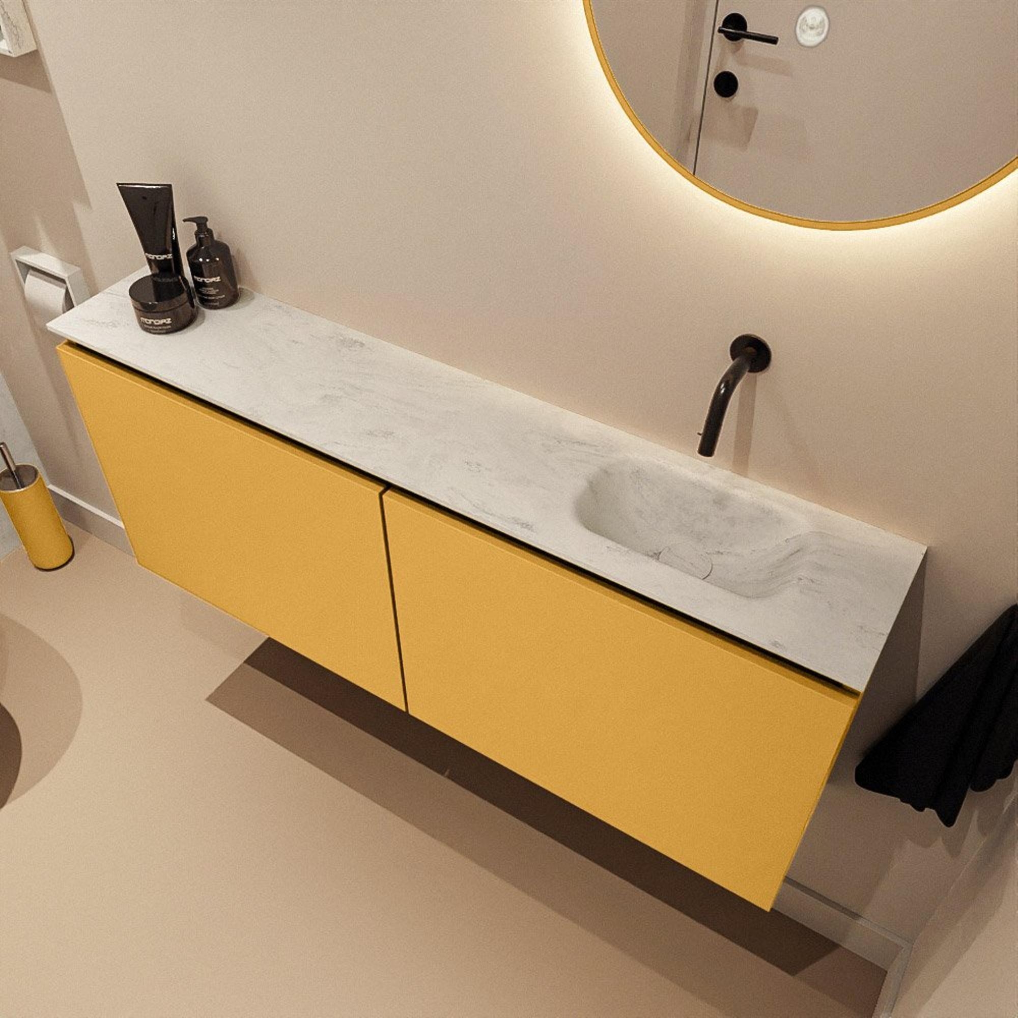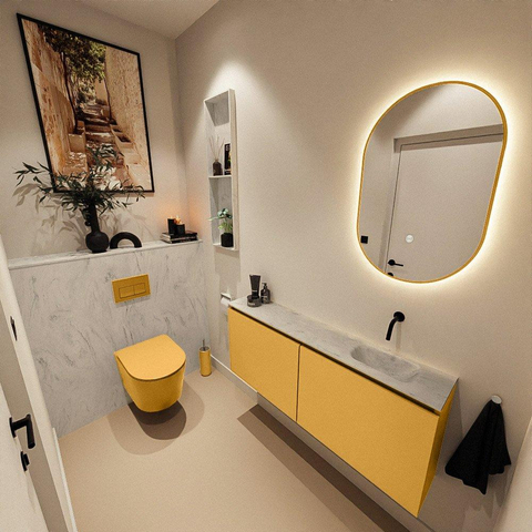 MONDIAZ TURE-DLUX 120cm toiletmeubel Ocher. EDEN wastafel Opalo positie rechts. Zonder kraangat.