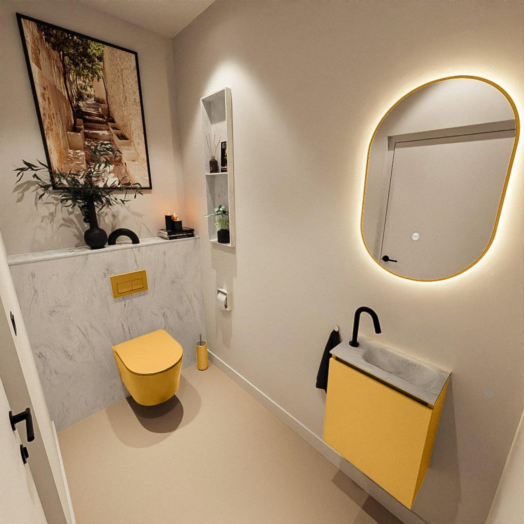 MONDIAZ TURE-DLUX 40cm toiletmeubel Ocher. EDEN wastafel Opalo positie rechts. Met 1 kraangat.