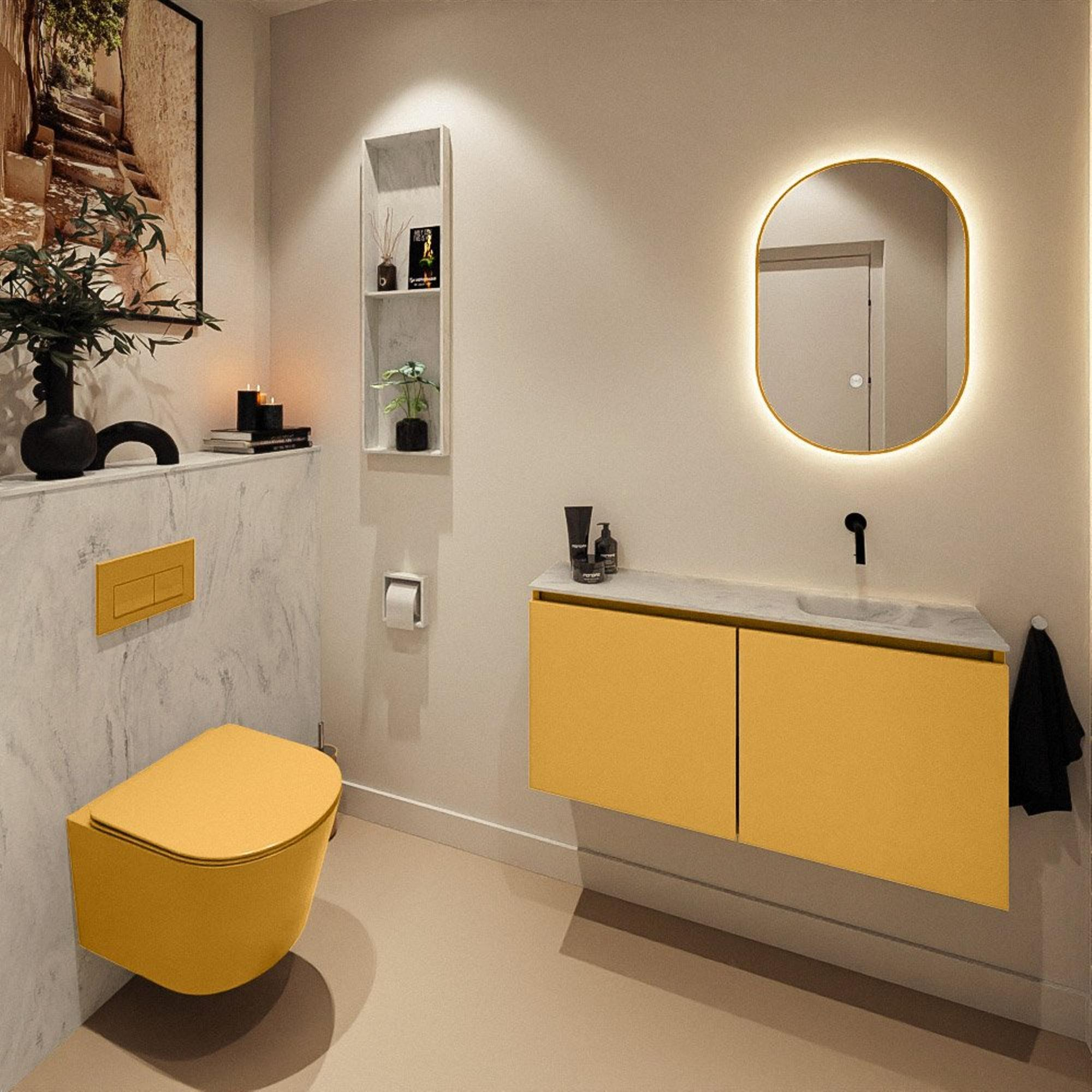 MONDIAZ TURE-DLUX 100cm toiletmeubel Ocher. EDEN wastafel Opalo positie rechts. Zonder kraangat.