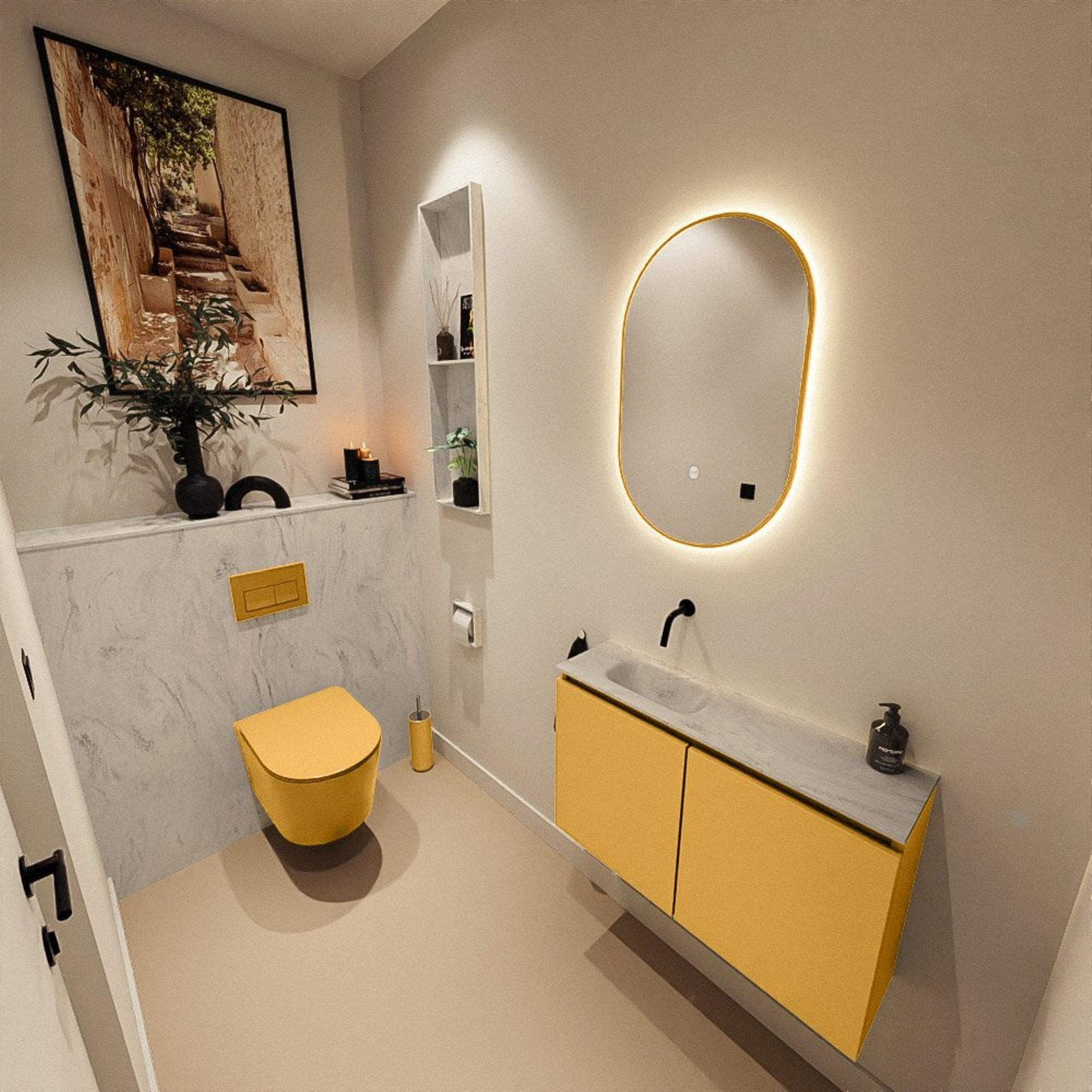 MONDIAZ TURE-DLUX 80cm toiletmeubel Ocher. EDEN wastafel Opalo positie links. Zonder kraangat.